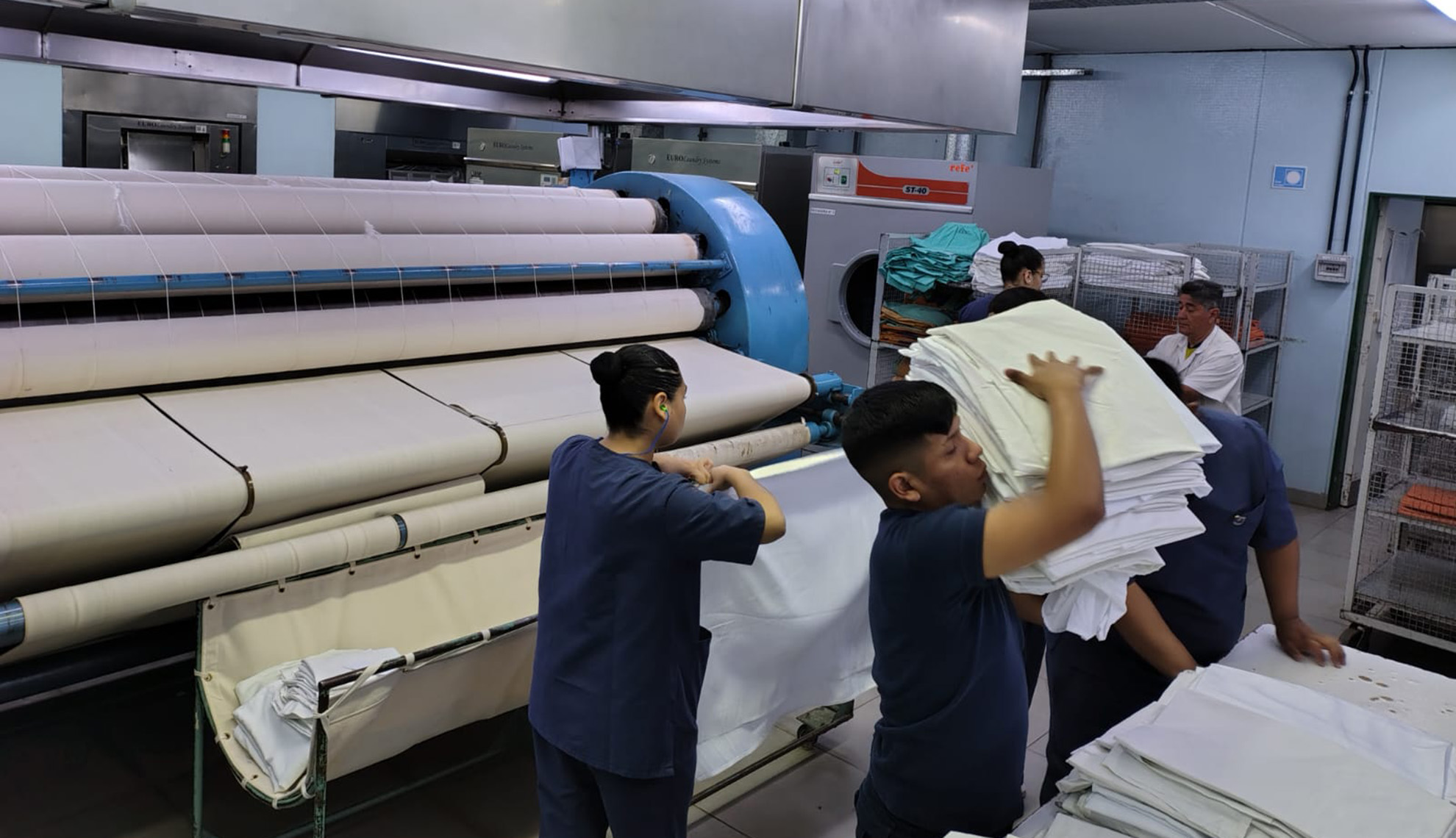 Entre los avances más importantes se destacan la puesta en marcha de dos calderas de alta presión, la renovación completa del sistema de vapor, la reparación de máquinas de barrera sanitaria y de una máquina calandra (para secado y planchado industrial), todas con nuevos sistemas de dosificación automática para mejorar el control de insumos. Además, se trabaja en la incorporación de tecnología de punta, como una generadora de ozono y nuevas lavadoras industriales de gran capacidad.