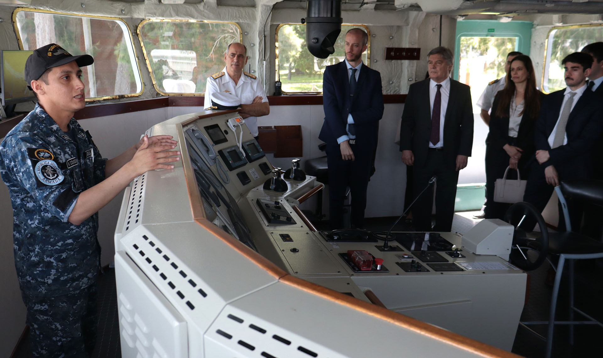 El contingente, presidido por el Director del ISEN, Embajador Marcelo Heriberto Buffetti, fue recibido por el Director de la ESNM, Contraalmirante Pablo Germán Basso.