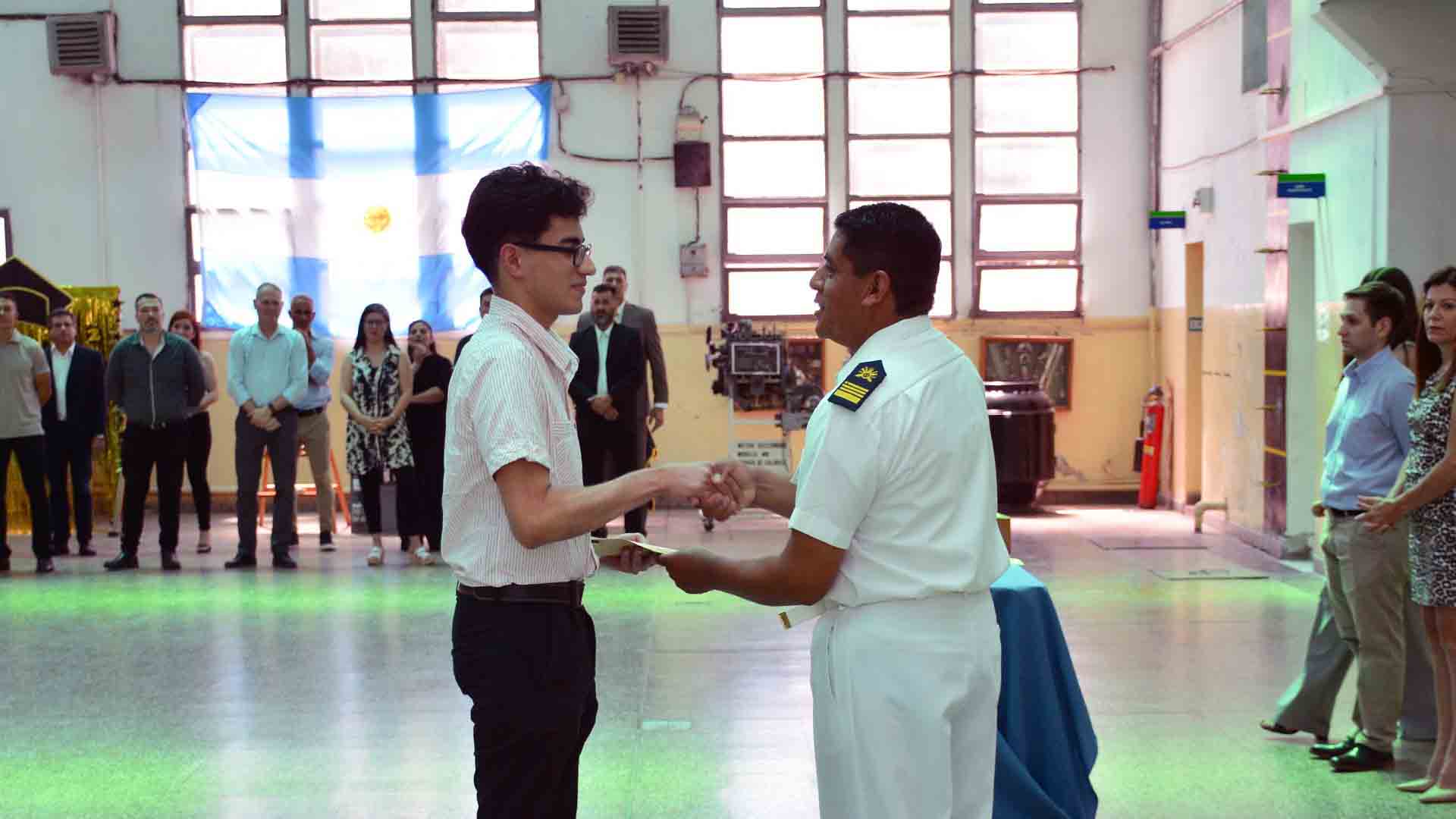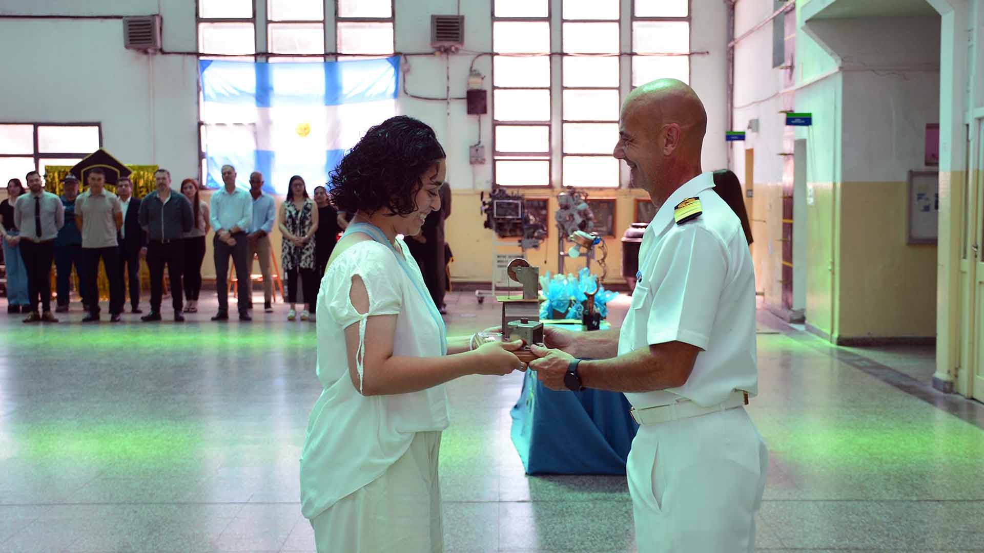 El acto marcó el cierre del presente ciclo lectivo de la institución que forma a sus alumnos en las especialidades de Máquinas Navales, Estructuras Navales, Motores Navales, Carpintería Naval, Electricidad Naval y Electrónica Naval.