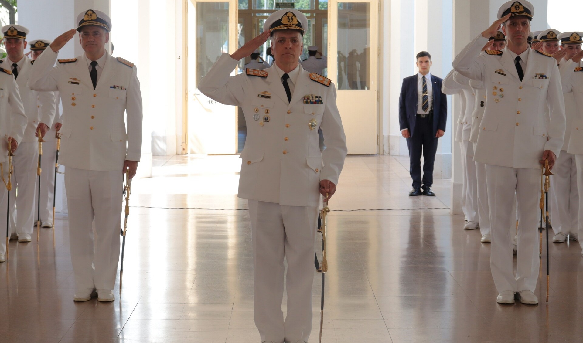 Sobre el final de su alocución, se refirió al Director entrante, resaltando que “su capacidad y prestigio lo preceden”, y señaló que recibe una escuela en pleno funcionamiento, comprometida y consciente de su misión. Asimismo, destacó que el establecimiento educativo seguirá siendo la cuna de los oficiales de la Armada mientras exista “vocación, disciplina y amor por la Patria”.