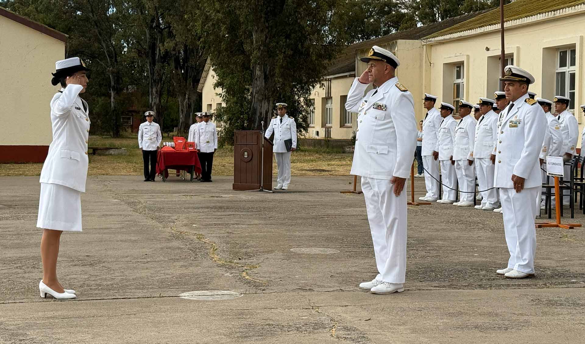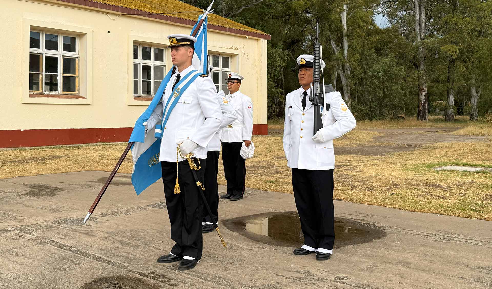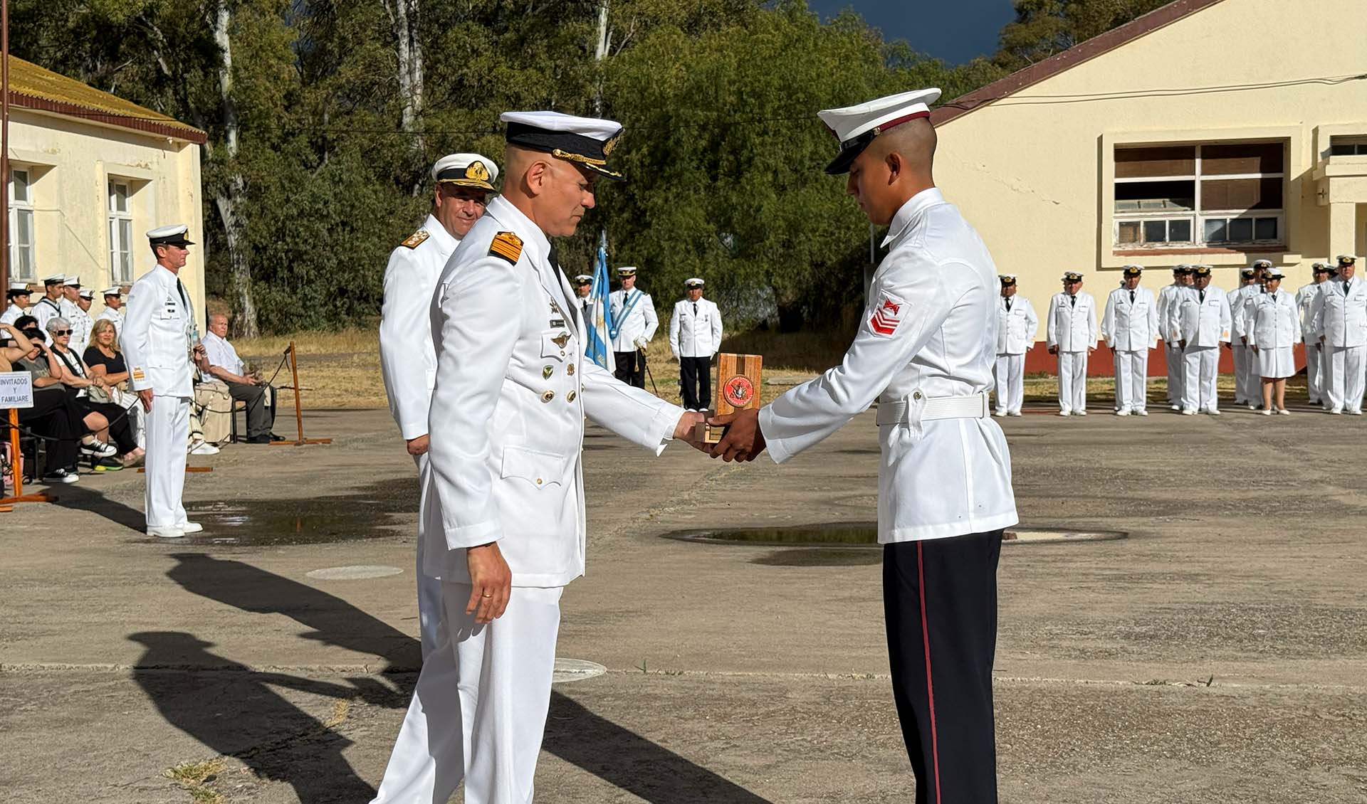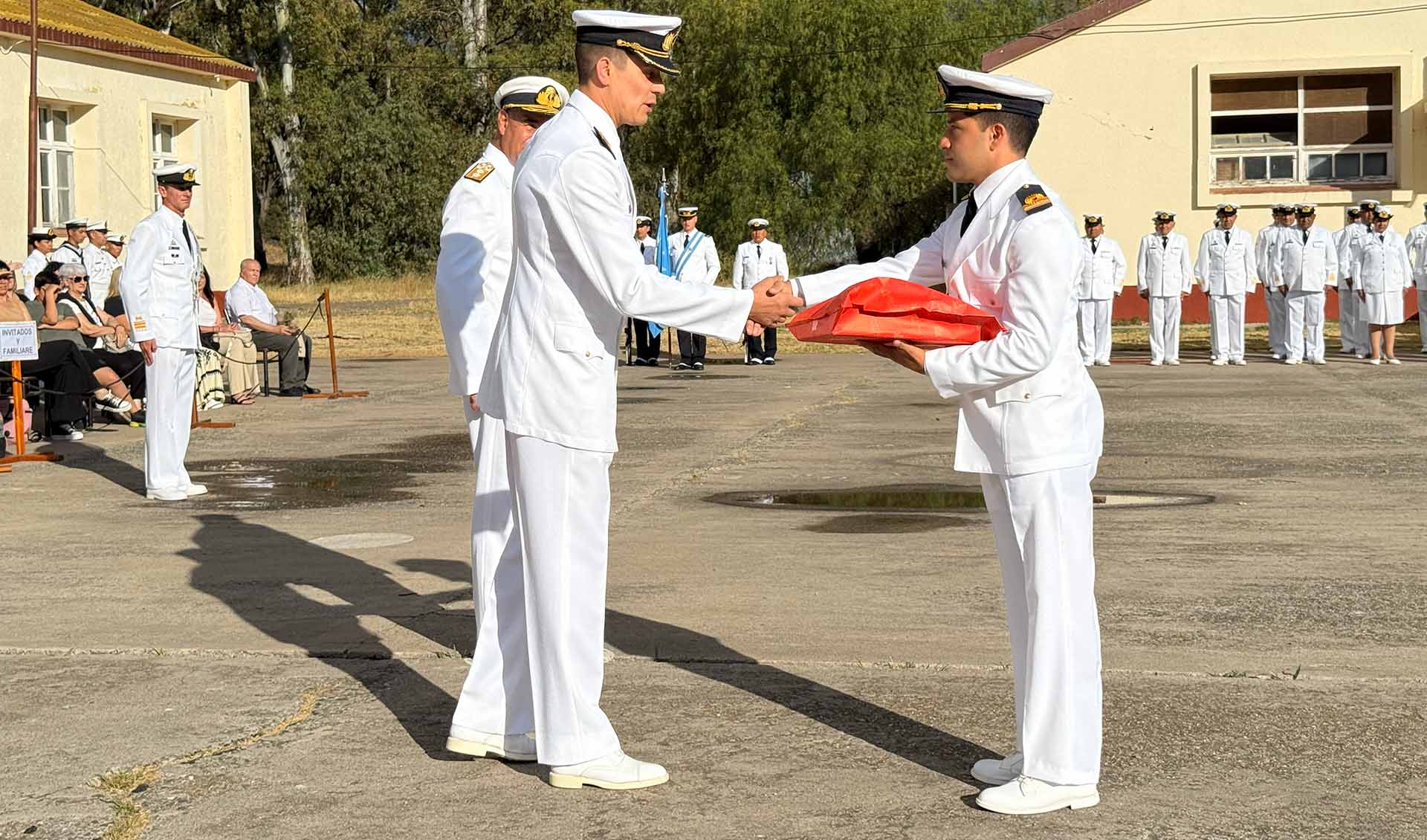 El acto estuvo presidido por el Comandante de la Infantería de Marina, Contraalmirante Javier Pedro López acompañado por el Comandante de la Infantería de Marina de la República Oriental del Uruguay, Capitán de Navío Sergio Enrique Sar Pellejero. También asistieron autoridades de la conducción de la zona, representantes de las diferentes unidades del componente, personal militar y civil, familiares e invitados especiales.