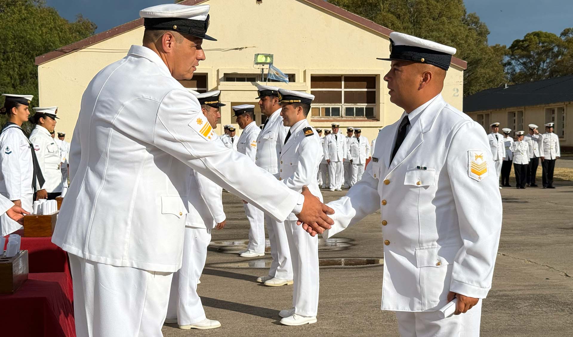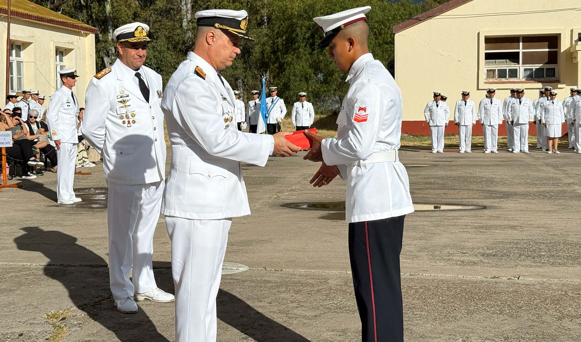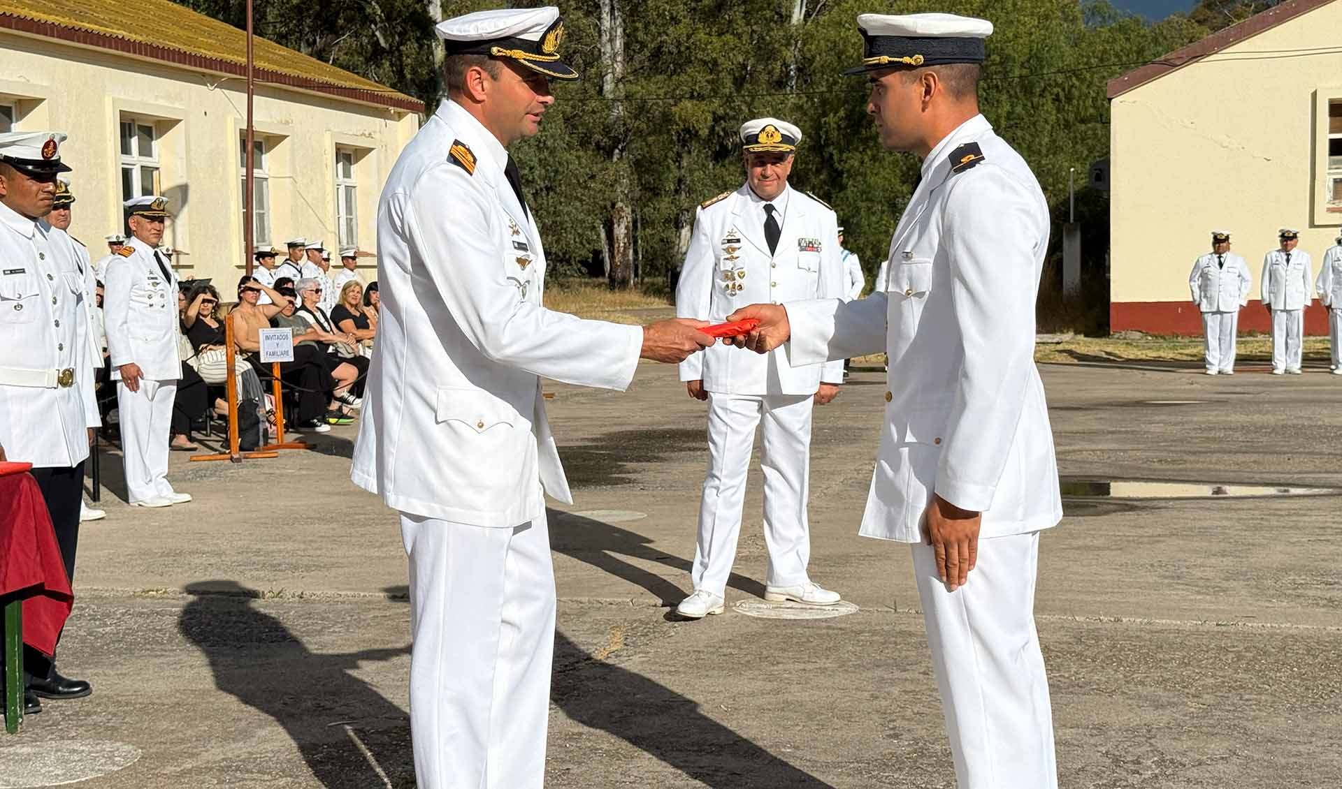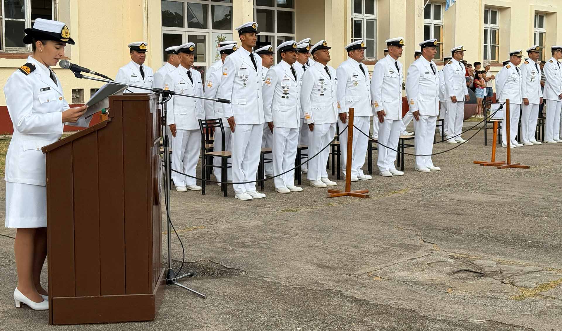 Al finalizar, luego de que se entonaran las estrofas de la Marcha de la Armada, el Contraalmirante López hizo uso de la palabra para felicitar a quienes obtuvieron el diploma de fin de curso, demostrando un elevado nivel de preparación, disciplina y capacidad para afrontar las exigencias de la instancia formativa.