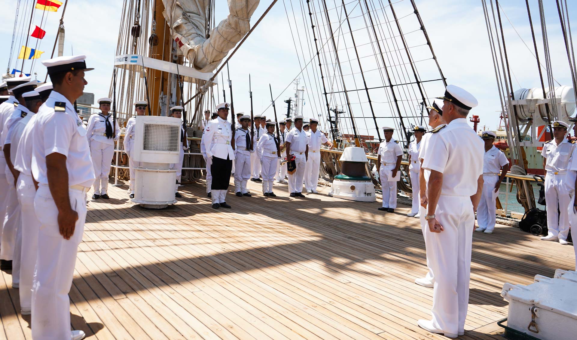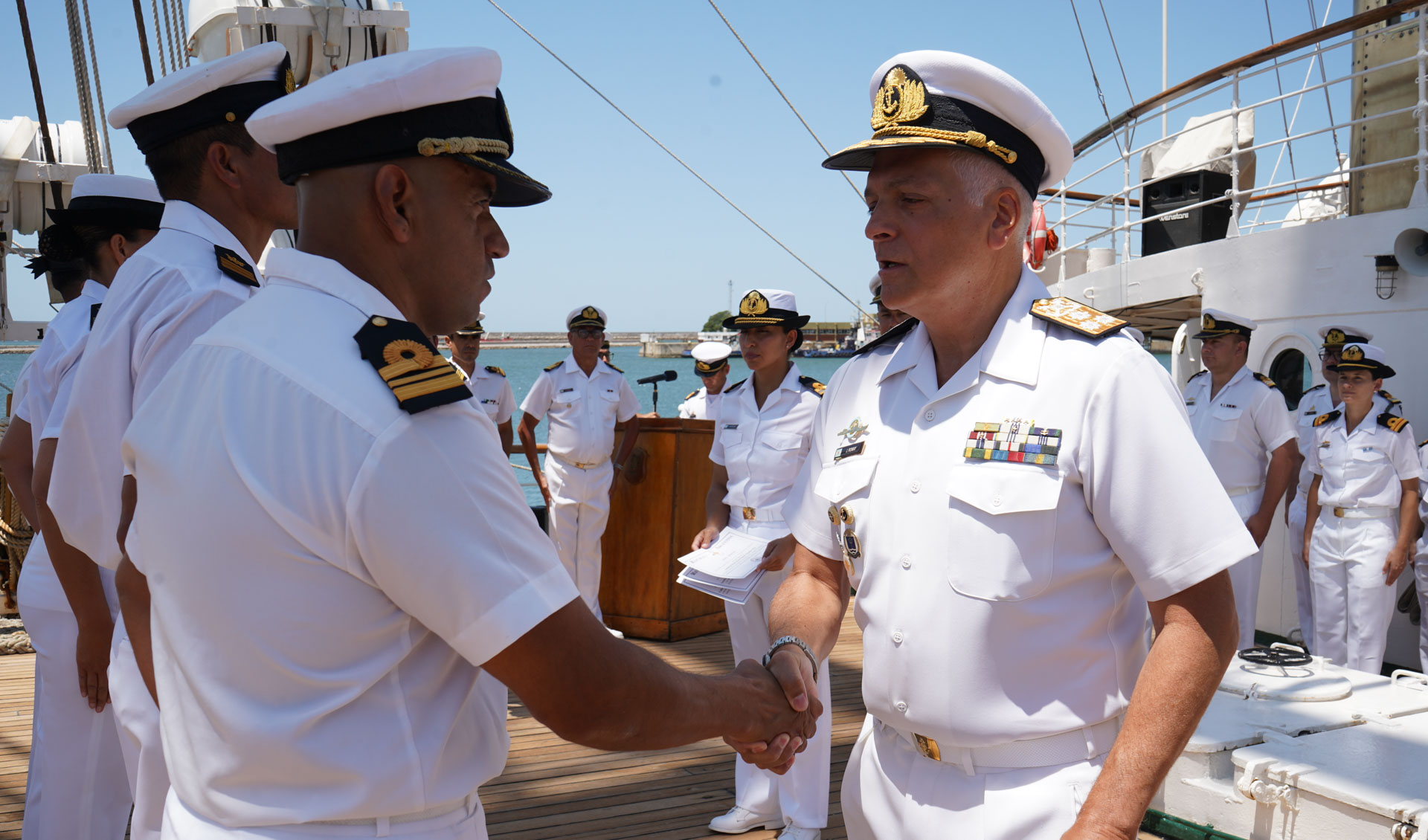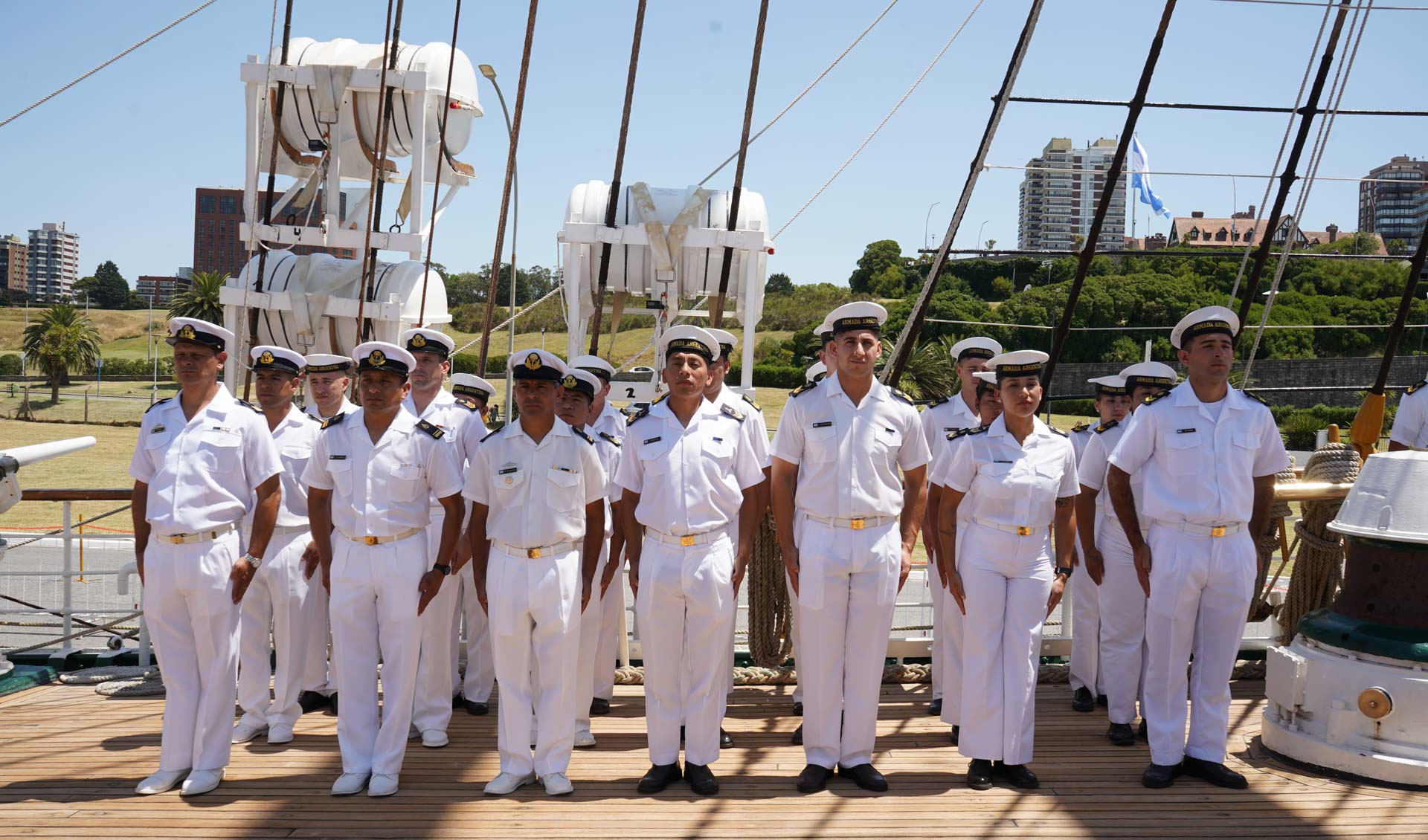 De la ceremonia, presidida por el Jefe del Estado Mayor General de la Armada, Vicealmirante Juan Carlos Romay, también participaron el Comandante del Área Naval Atlántica, Comodoro de Marina Fernando Pérez Kühn, el Comandante de la fragata ARA “Libertad”, Capitán de Navío Jorge Gabriel Cáceres, y dotación de la unidad, entre otros.