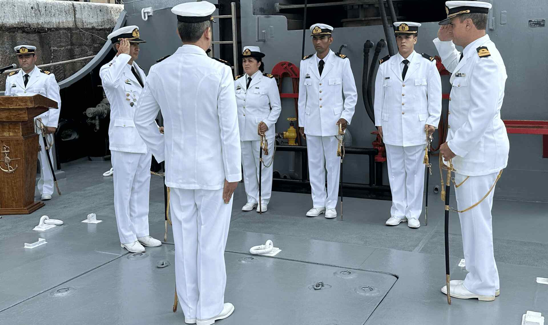 Asimismo, agradeció a la dotación del buque por el “profesionalismo, la lealtad y el compromiso” demostrados durante su comando.