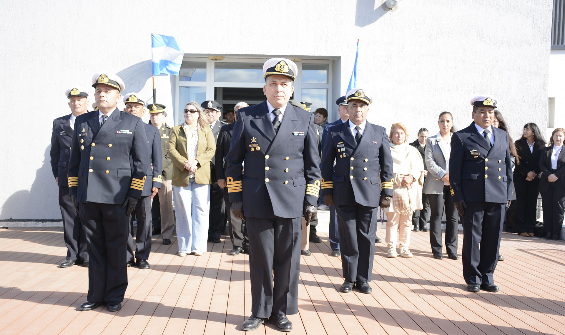 La ceremonia fue encabezada por el Jefe del Departamento Santa Cruz y del Apostadero Naval Río Gallegos, Capitán de Navío Humberto Javier Barriga.