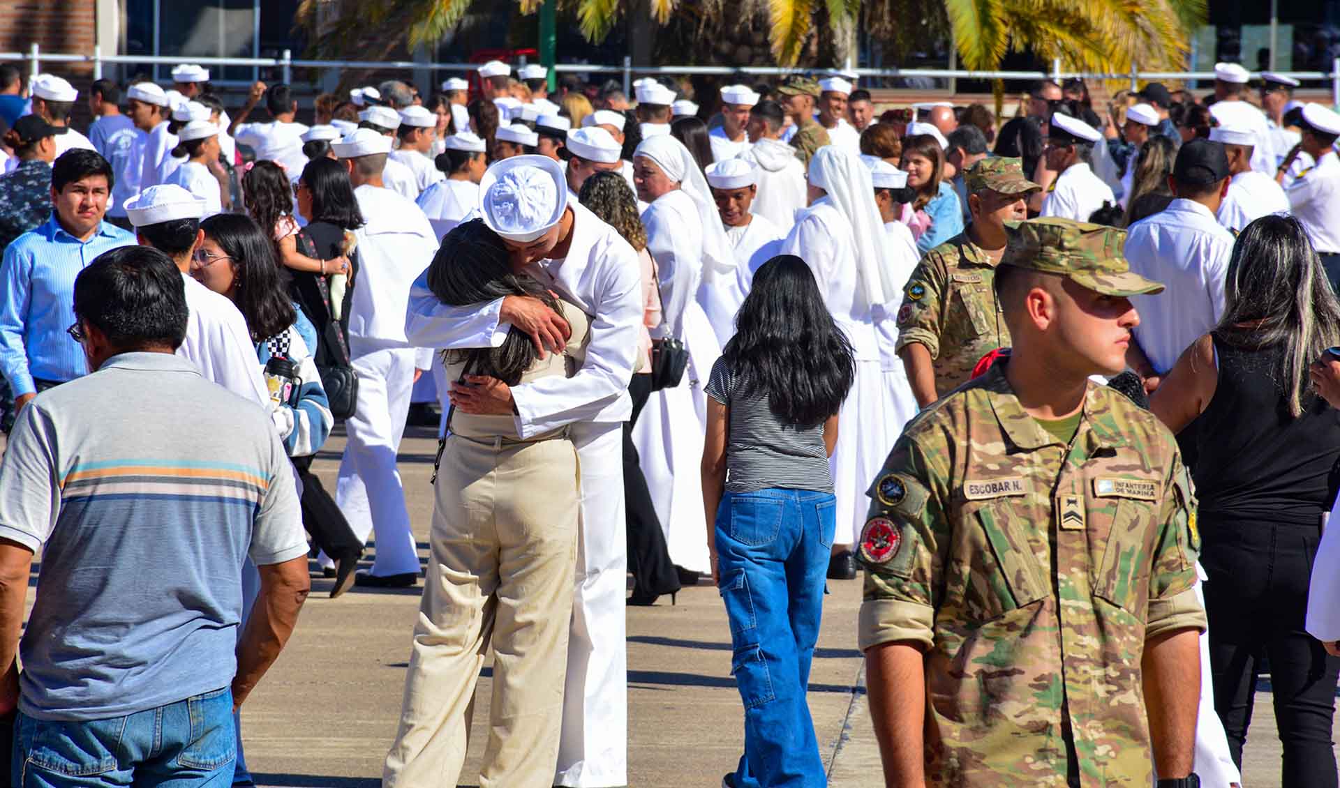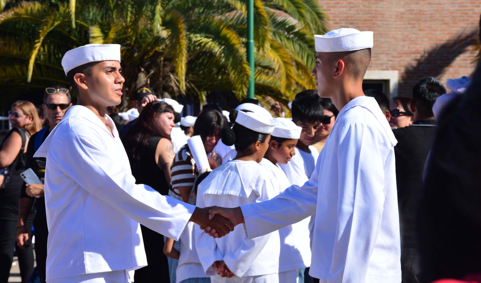 La ceremonia estuvo presidida por el director del establecimiento educativo naval. Luego del acto, los aspirantes se reencontraron con familiares y amigos.
