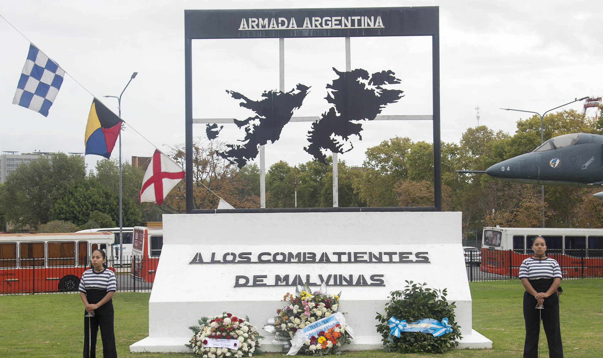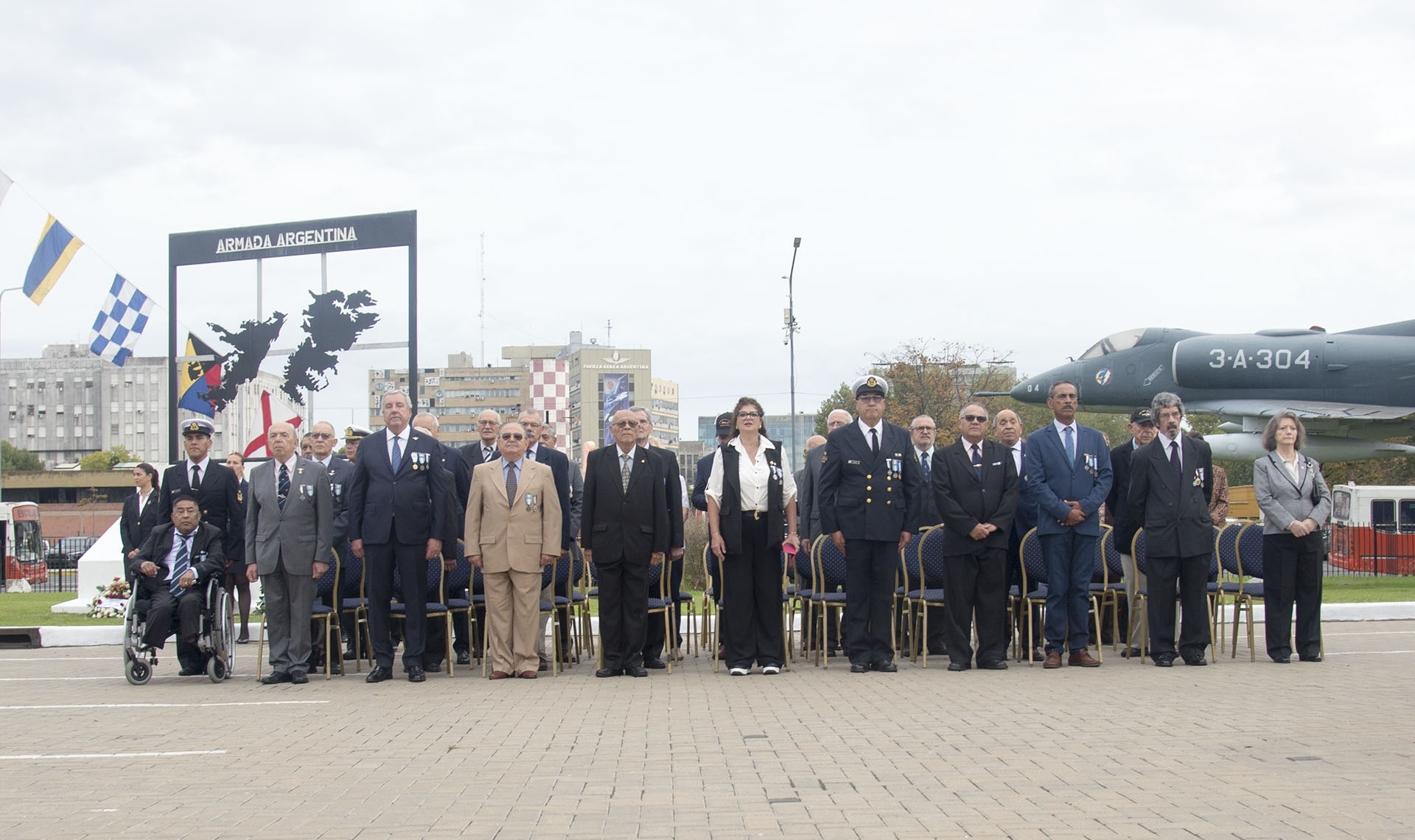 Después de que el Capellán Mayor de la Armada, presbítero Francisco Rostom Maderna realizó una invocación religiosa, se efectuó la colocación de una ofrenda floral frente al monumento de los Caídos de Malvinas. A continuación, se invitó a los Veteranos de Malvinas presentes a rendir honores en el monumento y se ejecutó toque de silencio.