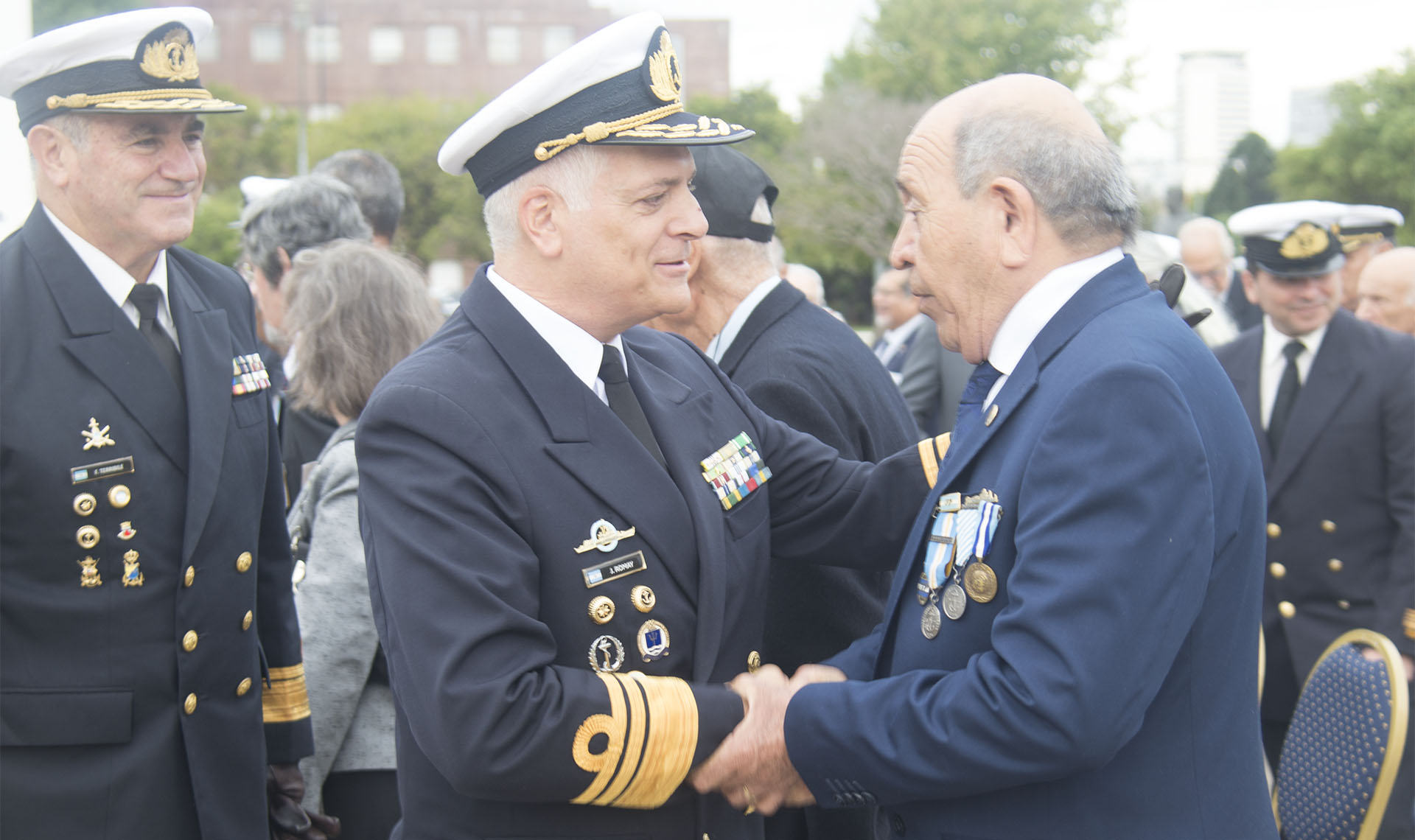 Con la entonación de la Marcha de Malvinas, se dio por finalizada la ceremonia y el jefe de la Armada junto con el resto de los integrantes de la conducción saludaron a cada uno de los Veteranos de Guerra presentes.
