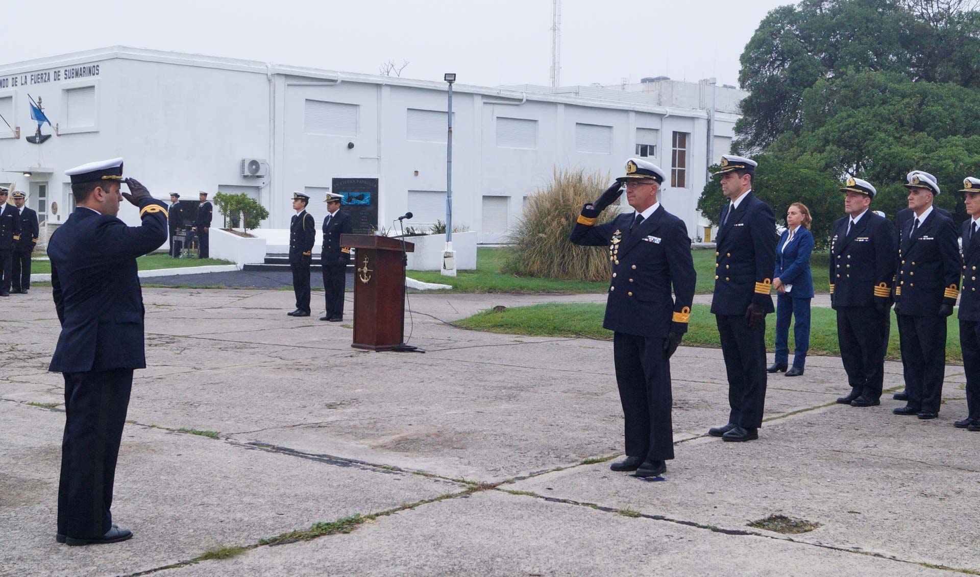 En la Base Naval Mar del Plata, el Comandante del Área Naval Atlántica y Jefe de la Base Naval Mar del Plata, Comodoro de Marina Fernando Enrique Pérez Kühn, presidió la ceremonia de pabellón, a 44 años del Conflicto del Atlántico Sur. Concurrió el personal militar y civil, junto a Veteranos de la Guerra de Malvinas e invitados especiales.