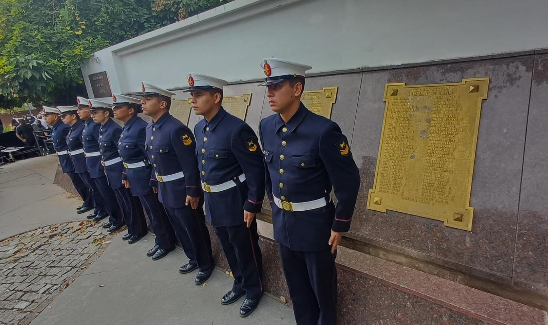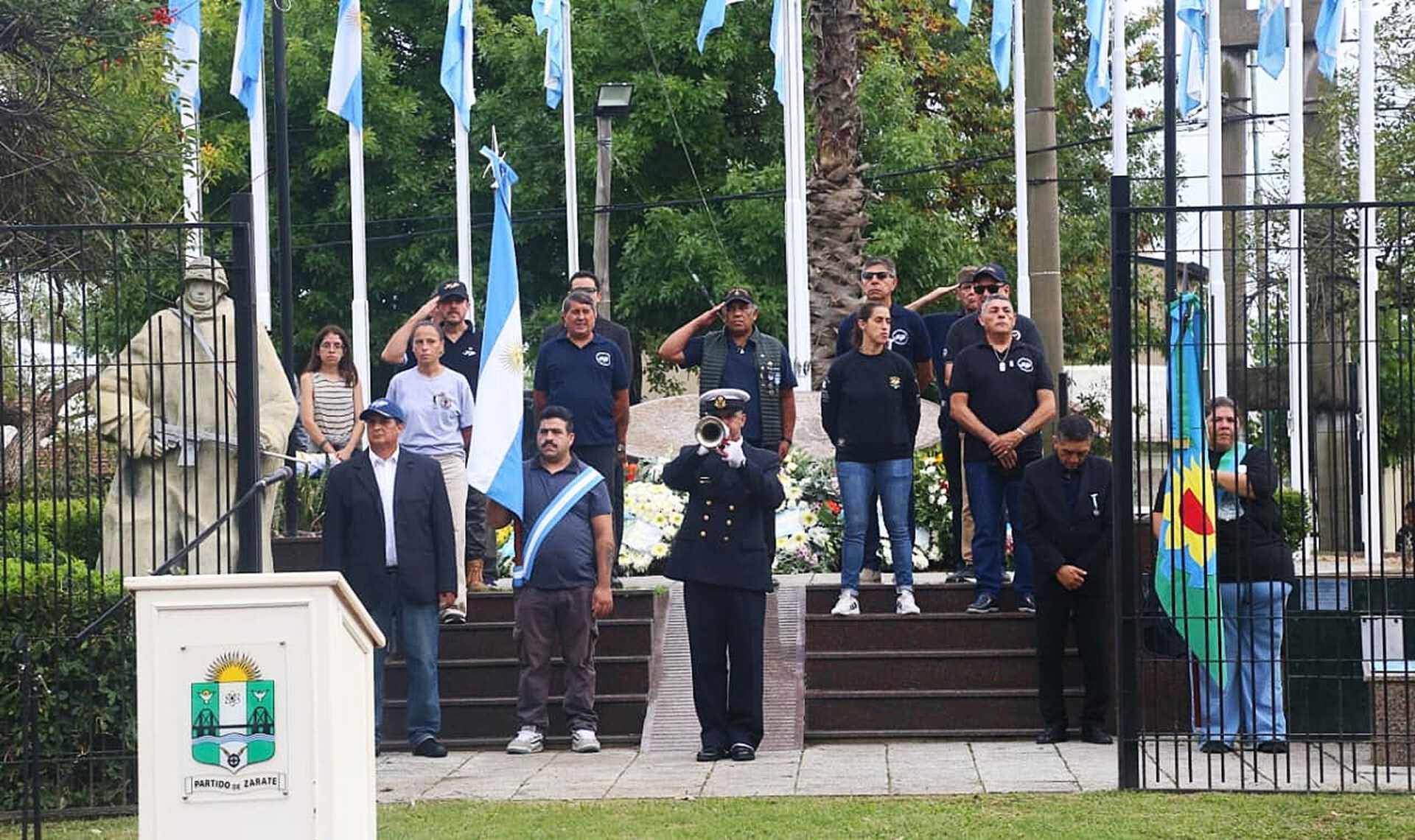 El Monumento al Soldado de Malvinas de la ciudad zarateña contó además con la presencia del Comandante del Batallón de Infantería de Marina N° 3 “Almirante Eleazar Videla” (BIM3), Capitán de Fragata Ángel Daniel Genissans, Grupos Bandera y secciones de la Base Naval Zárate y del BIM3.