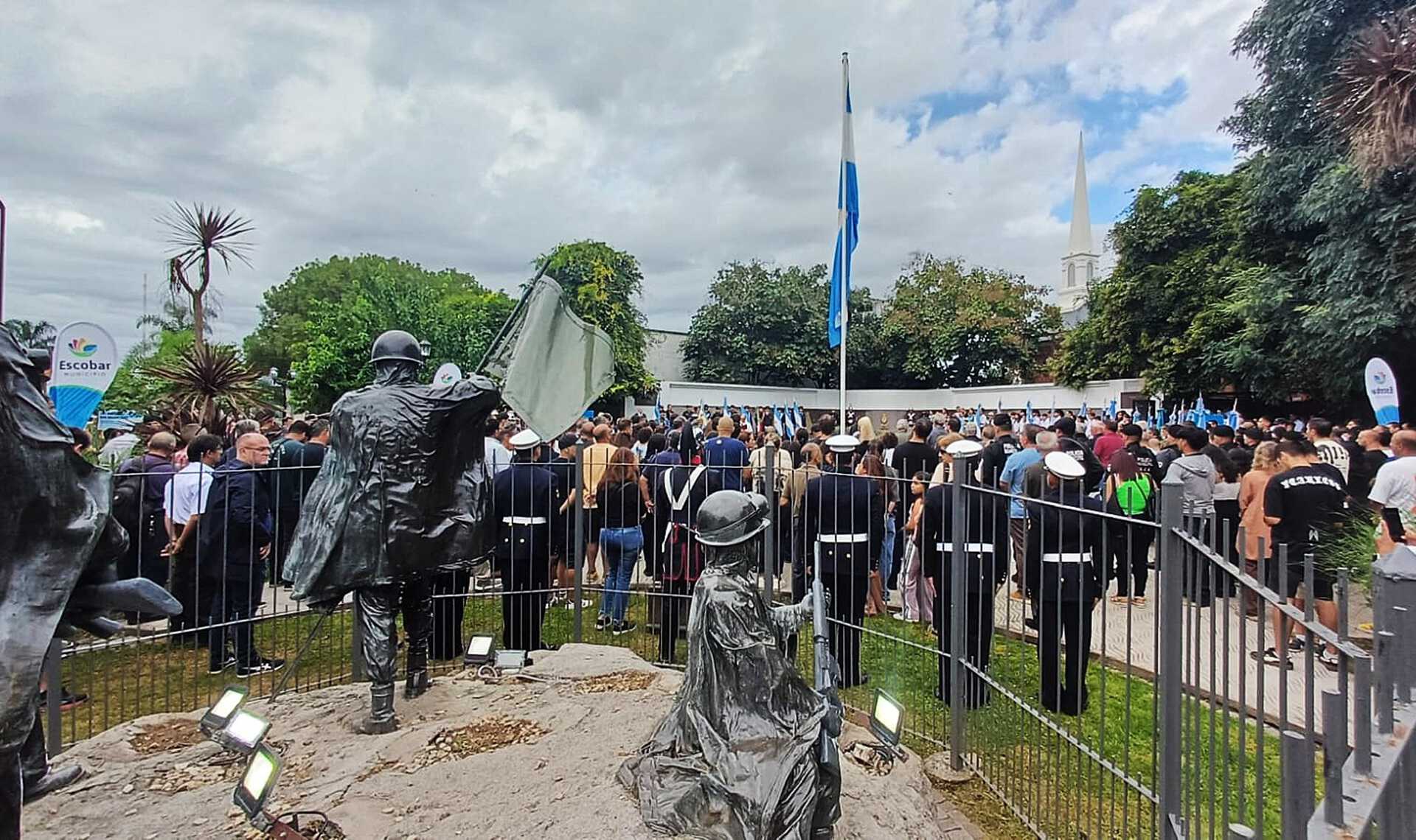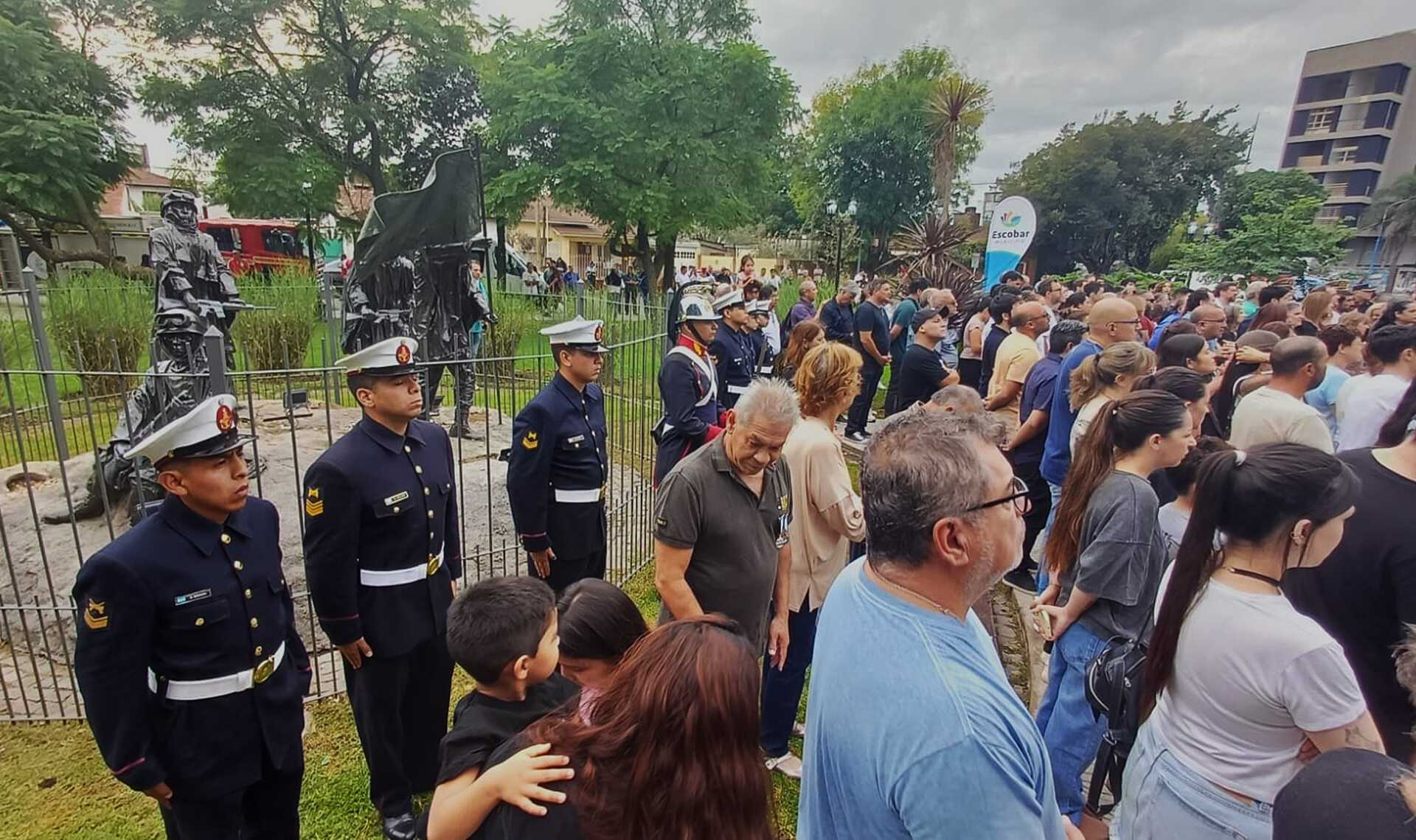 En Escobar, estuvieron presentes efectivos del BIM3 que conformaron junto al personal de otras Fuerzas, un cordón de honor en la plaza de los Excombatientes de Malvinas, ubicada en el acceso a la ciudad.