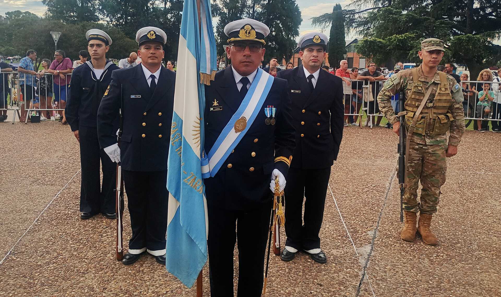 El Comandante del Área Naval Fluvial y Jefe de la Base Naval Zárate, Comodoro de Marina Damián Gabriel Orgiazzi, participó de los actos en Zárate y Rosario.