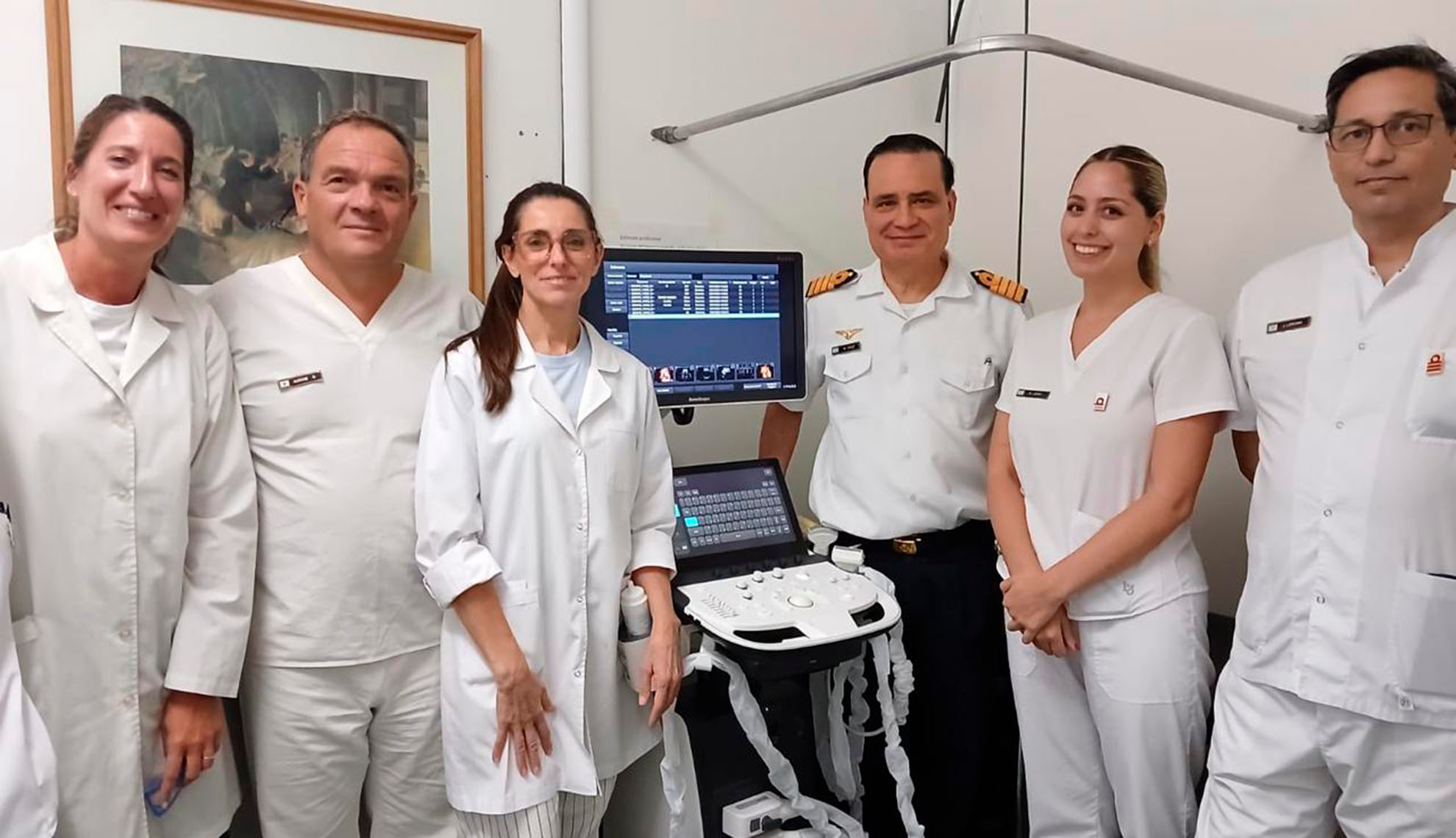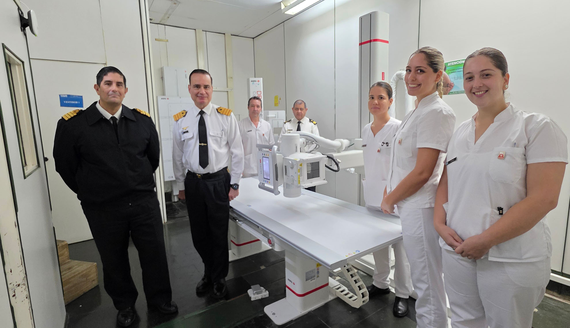 En paralelo, el director general del hospital, Capitán de Navío Gastón Grasso, y el director médico, Capitán de Navío Martín Díaz, encabezaron la recepción de nuevo equipamiento destinado al Departamento de Diagnóstico y Tratamiento, en línea con la política de innovación tecnológica de la institución.