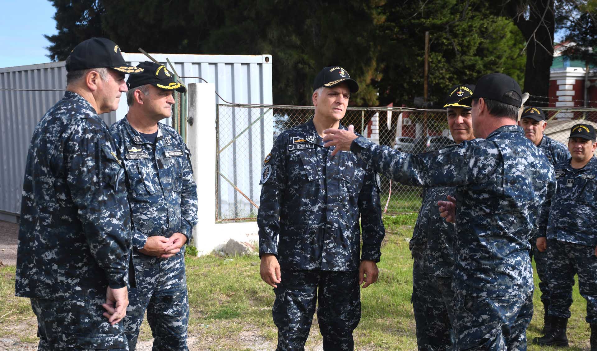 En ocasión de su visita a Puerto Belgrano, el Jefe del Estado Mayor General de la Armada, Vicealmirante Juan Carlos Romay, supervisó las tareas y tomó contacto con los responsables de los destinos como así también con el personal de la Armada Argentina que los está llevando adelante.