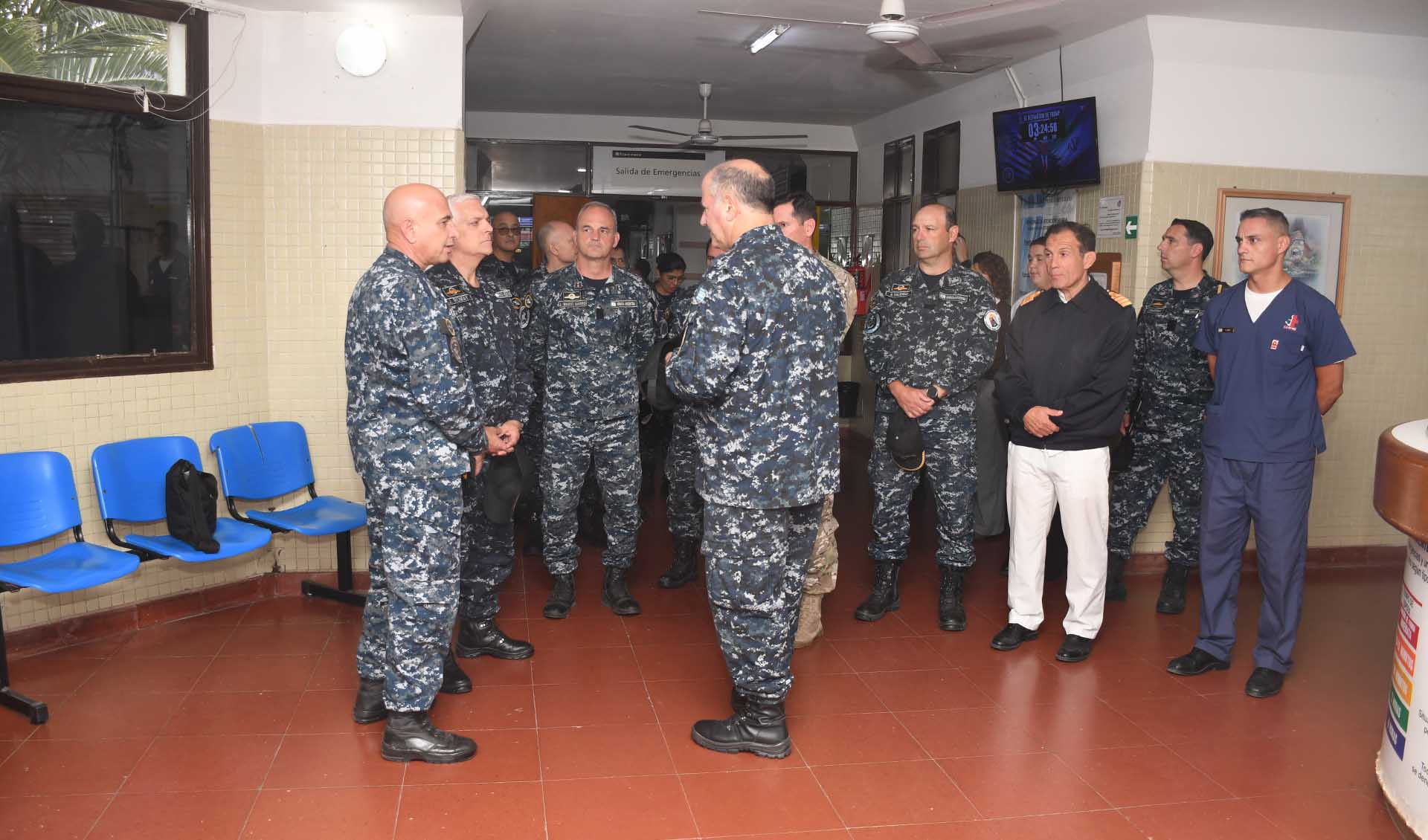En el Cuartel Base recorrió los alojamientos, en los que personal del destino realizó mejoras estructurales como así también se produjo la incorporación de mobiliario. Por su parte, en el Hospital Naval Puerto Belgrano, su director, Capitán de Navío Enrique Luis Salvador Olmedo, lo invitó a observar el funcionamiento actual del edificio de aptitud física, para luego continuar la visita en la guardia de emergencias, laboratorio, neonatología, área de internación, salud mental y quirófano.