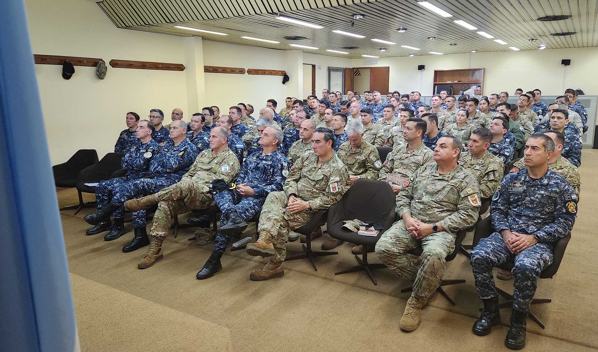 Además de los oficiales y estados mayores que participaron del ejercicio, presenciaron la exposición en calidad de observadores, integrantes de diferentes unidades, quienes se interiorizaron sobre el juego que se desarrolló, qué se practicó y cómo se hace, en este caso, un planeamiento anfibio.