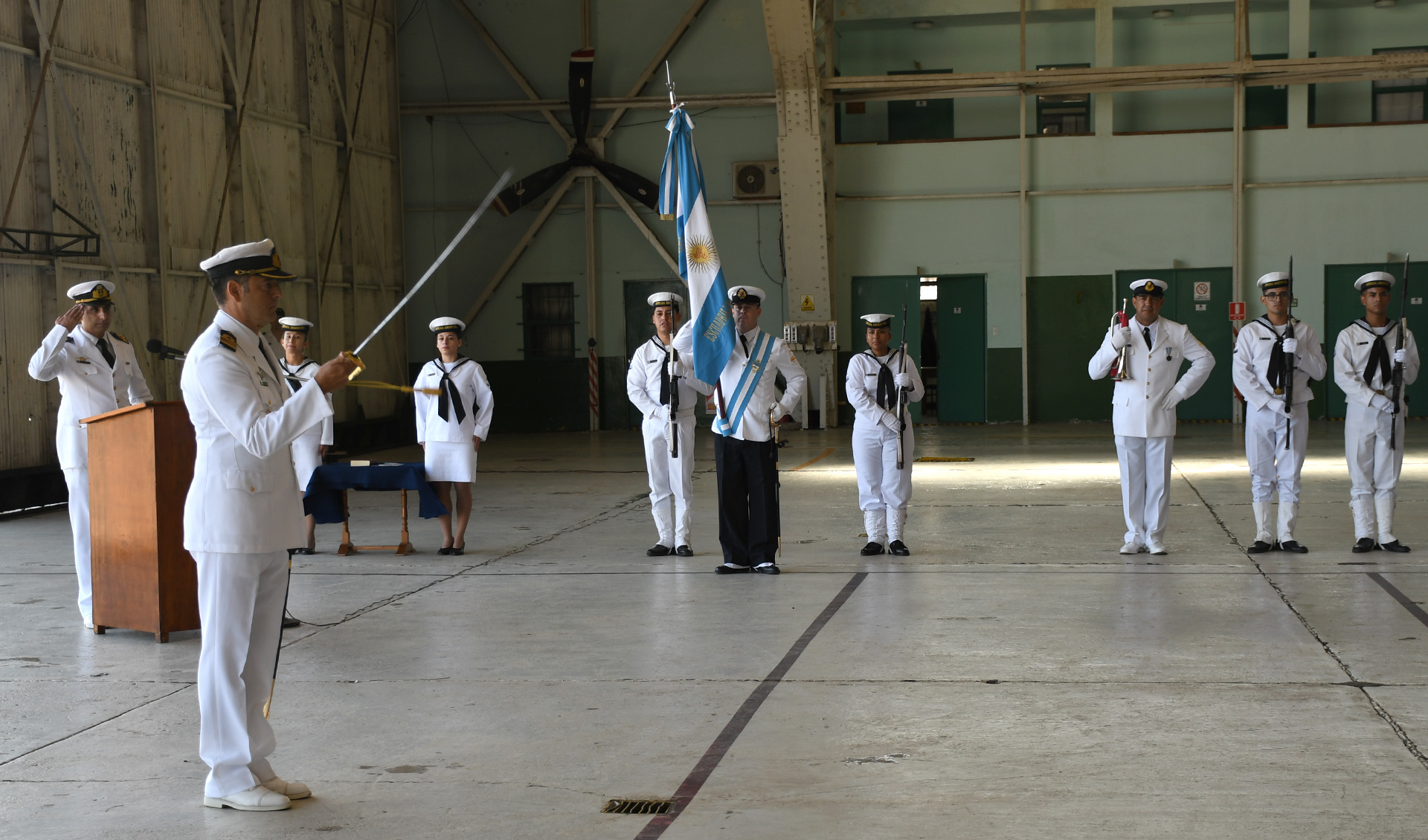 De manera consecutiva, se realizó la ceremonia de entrega y recepción del Comando de la Escuadra Aeronaval Nº 2 presidida por el Comandante de la Fuerza Aeronaval N° 2 (FAE2) Capitán de Navío Guillermo Molina, autoridad que ingresó acompañada de los capitanes Viozzi y Spoglia.