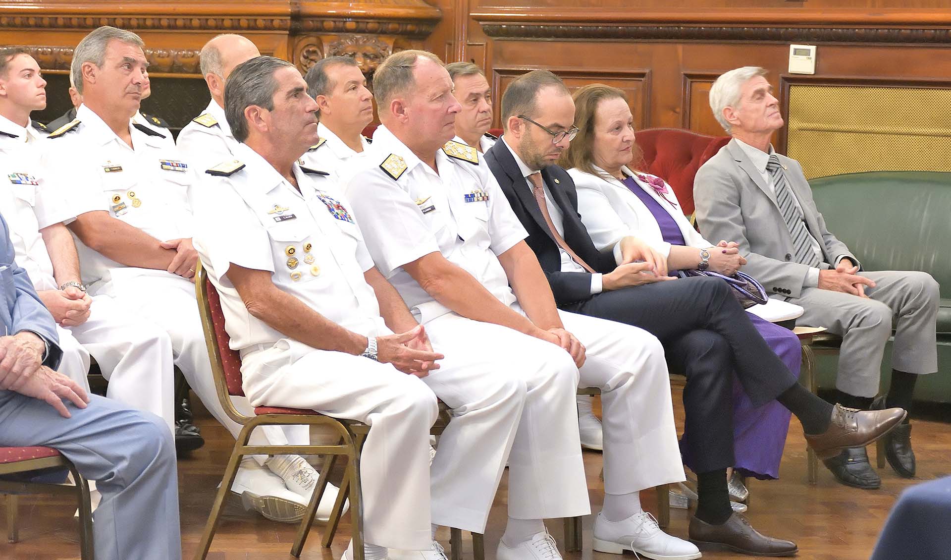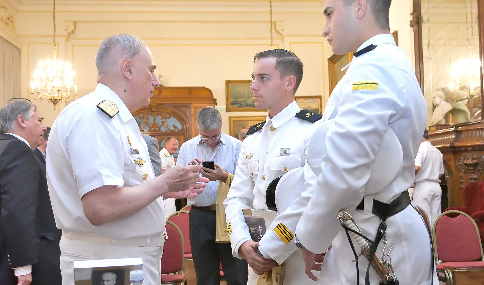 Entre las autoridades navales que acompañaron el lanzamiento del libro, se hicieron presentes el Jefe del Estado Mayor General de la Armada, Almirante Carlos María Allievi; el Subjefe del Estado Mayor General de la Armada, Vicealmirante Marcelo Ricardo Flamini; y el Director General del Estado Mayor de la Armada, Vicealmirante Juan Carlos Coré. También, asistieron oficiales retirados de la Institución, representantes diplomáticos extranjeros y cadetes de la Escuela Naval Militar.