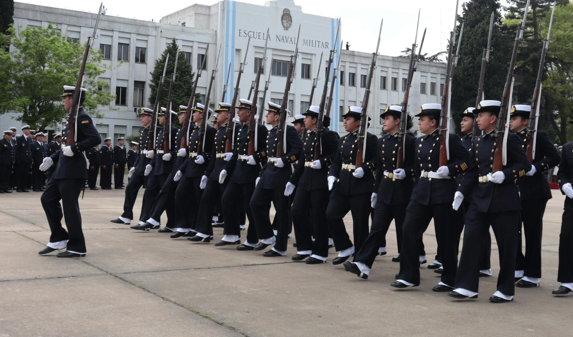 Recordó sus orígenes en 1872, cuando Domingo Faustino Sarmiento impulsó la creación de la Escuela Naval Militar que no solo es “un centro de formación académica y profesional”, sino además un crisol de valores como la veracidad, el esfuerzo, compañerismo, abnegación y sacrificio.