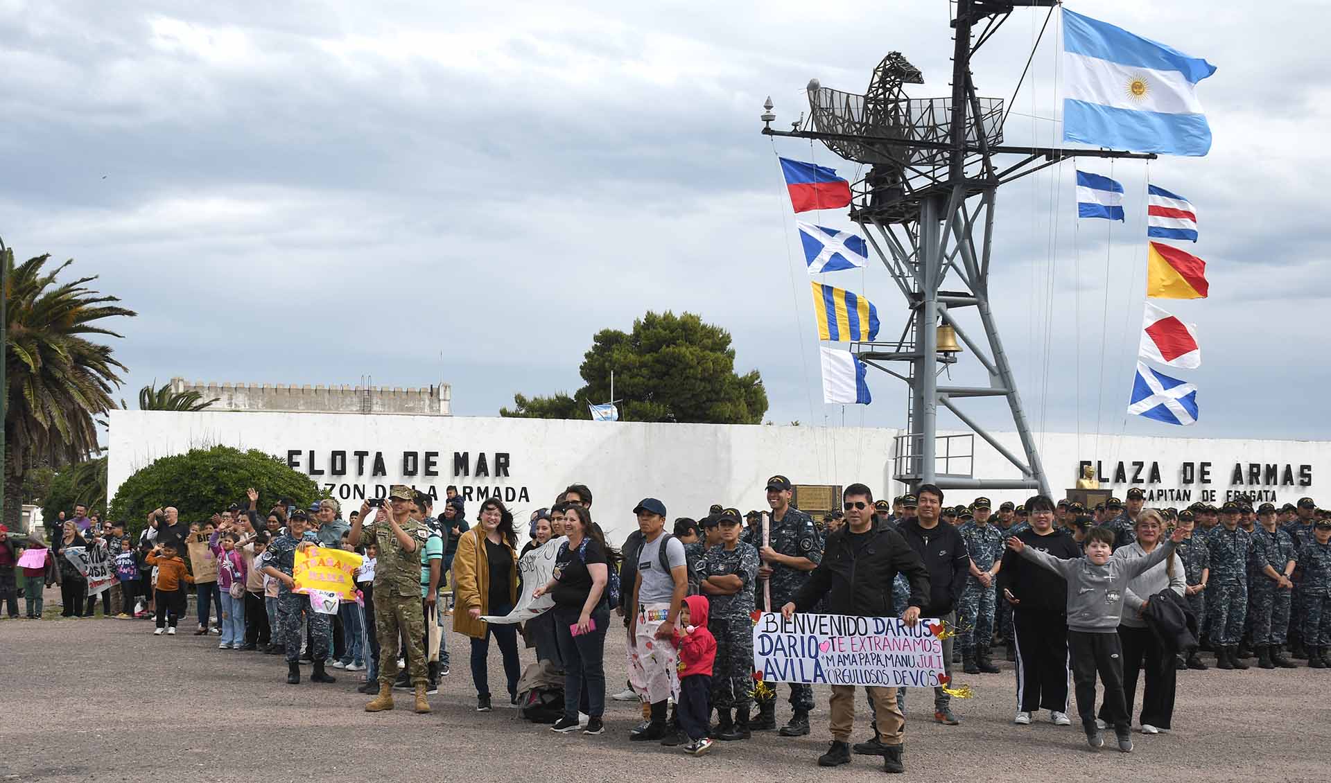 En la Plaza de Armas “Capitán de Fragata Sergio Gómez Roca” de la Flota de Mar, el personal del destructor fue recibido por el Jefe del Estado Mayor General de la Armada, Almirante Carlos María Allievi; el subjefe del Estado Mayor General de la Armada Argentina, Vicealmirante Marcelo Ricardo Flamini; y el Comandante de Adiestramiento y Alistamiento de la Armada, Contraalmirante Gustavo Fabián Lioi Pombo. Se dio en el marco de una ceremonia donde también participaron autoridades superiores de la Fuerza, personal militar y civil con asiento en la zona, familiares e invitados especiales.