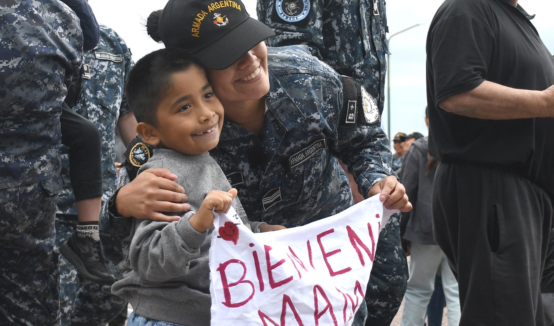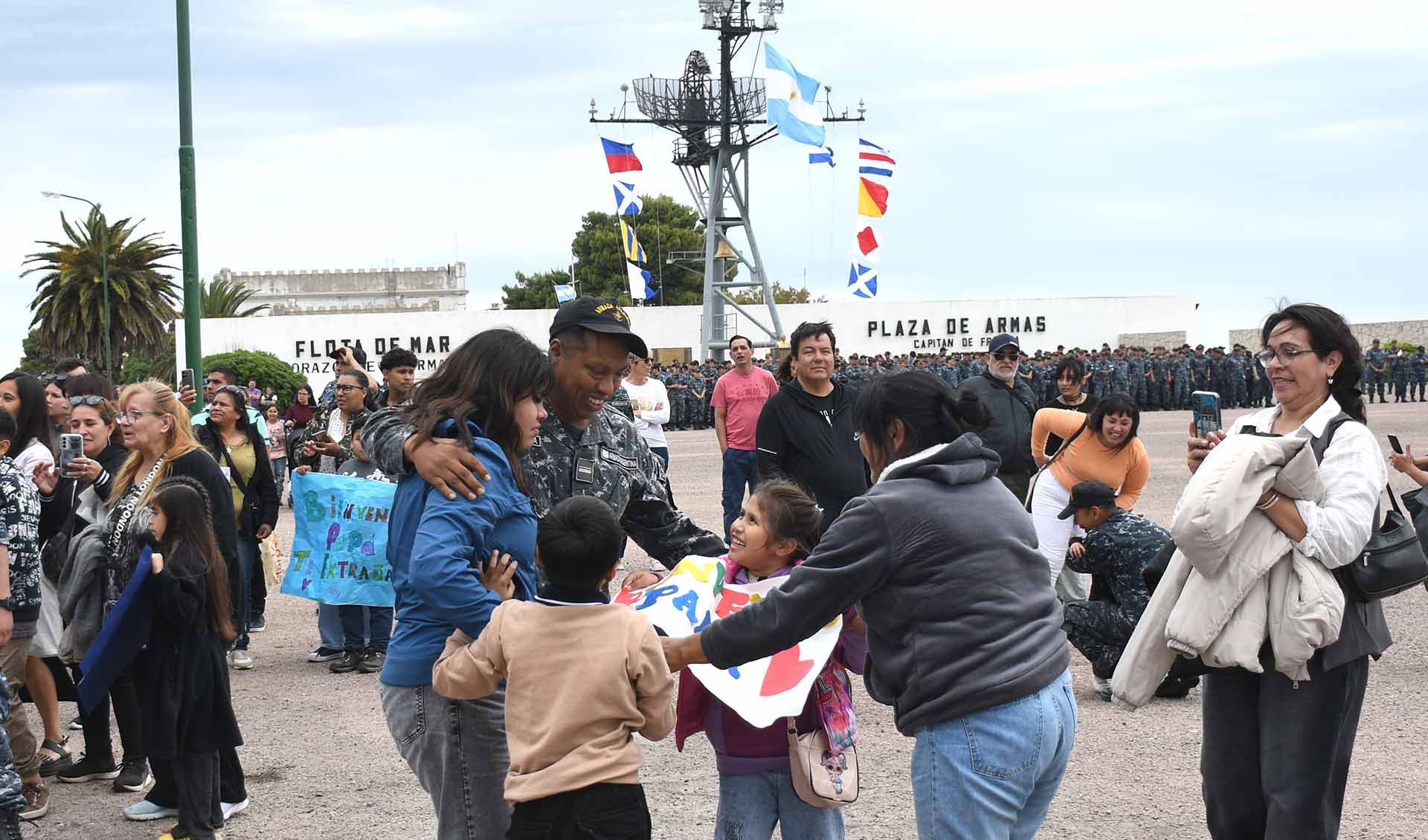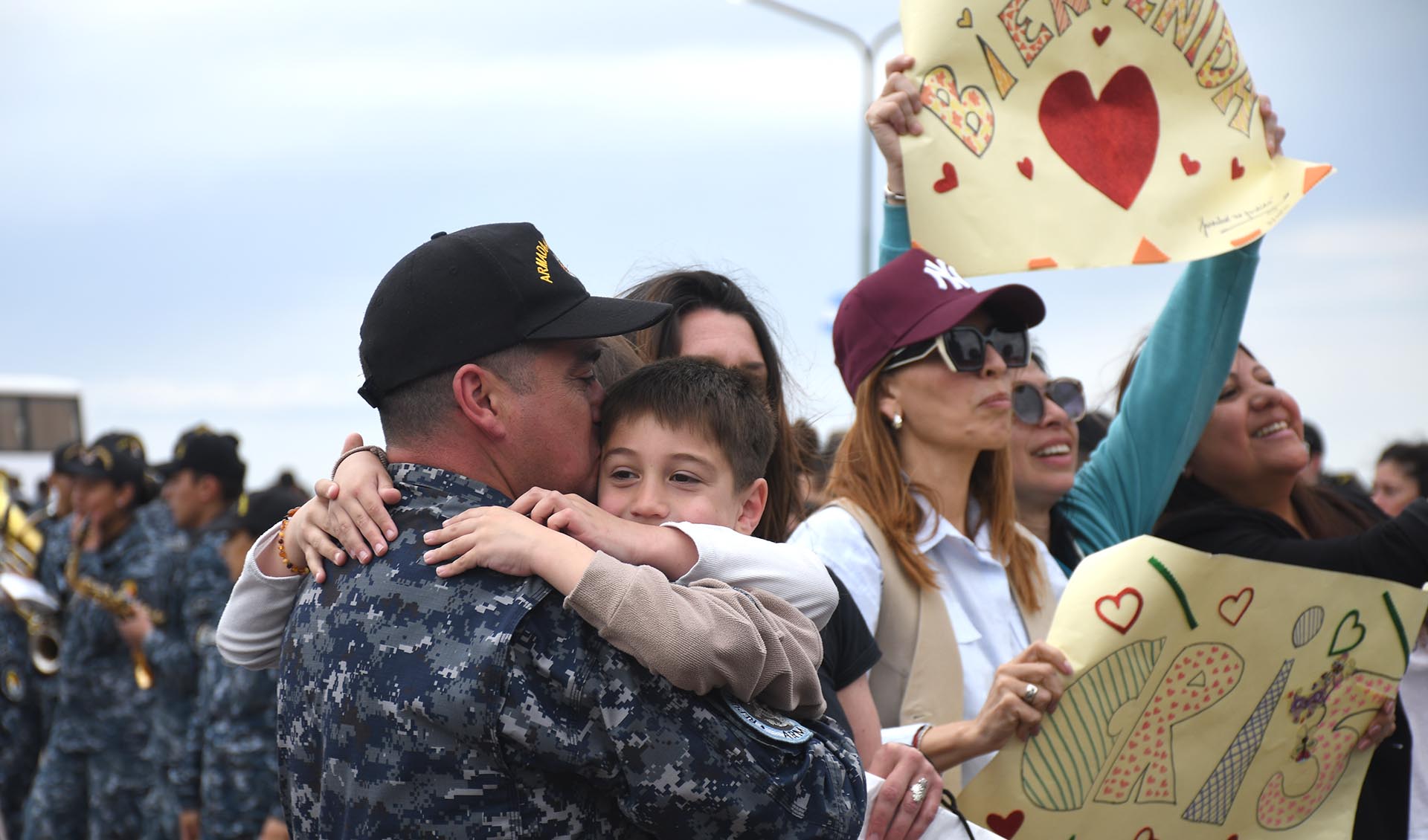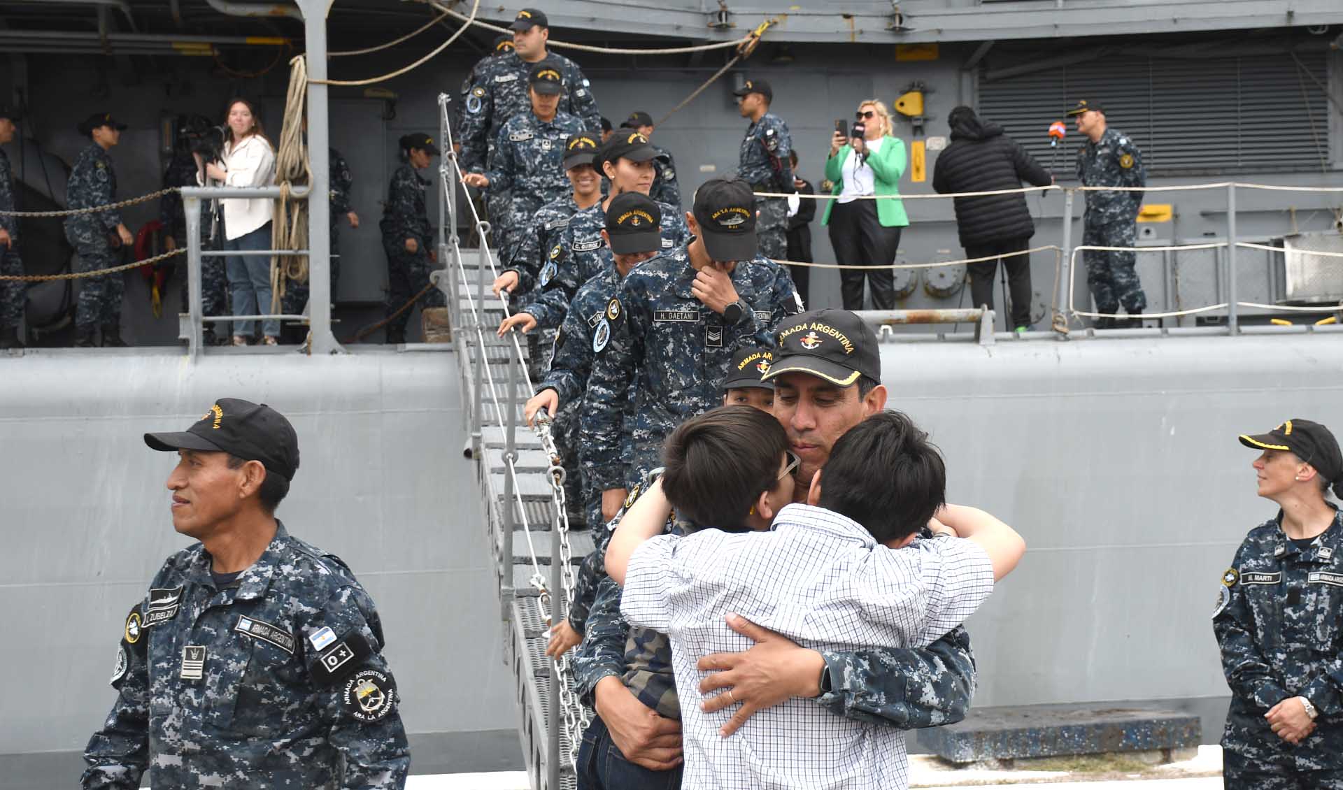 La unidad, que participó en el ejercicio Unitas LXVI en los Estados Unidos de América, fue recibida por el Jefe del Estado Mayor General de la Armada, Almirante Carlos María Allievi, autoridades navales y familiares de la tripulación.