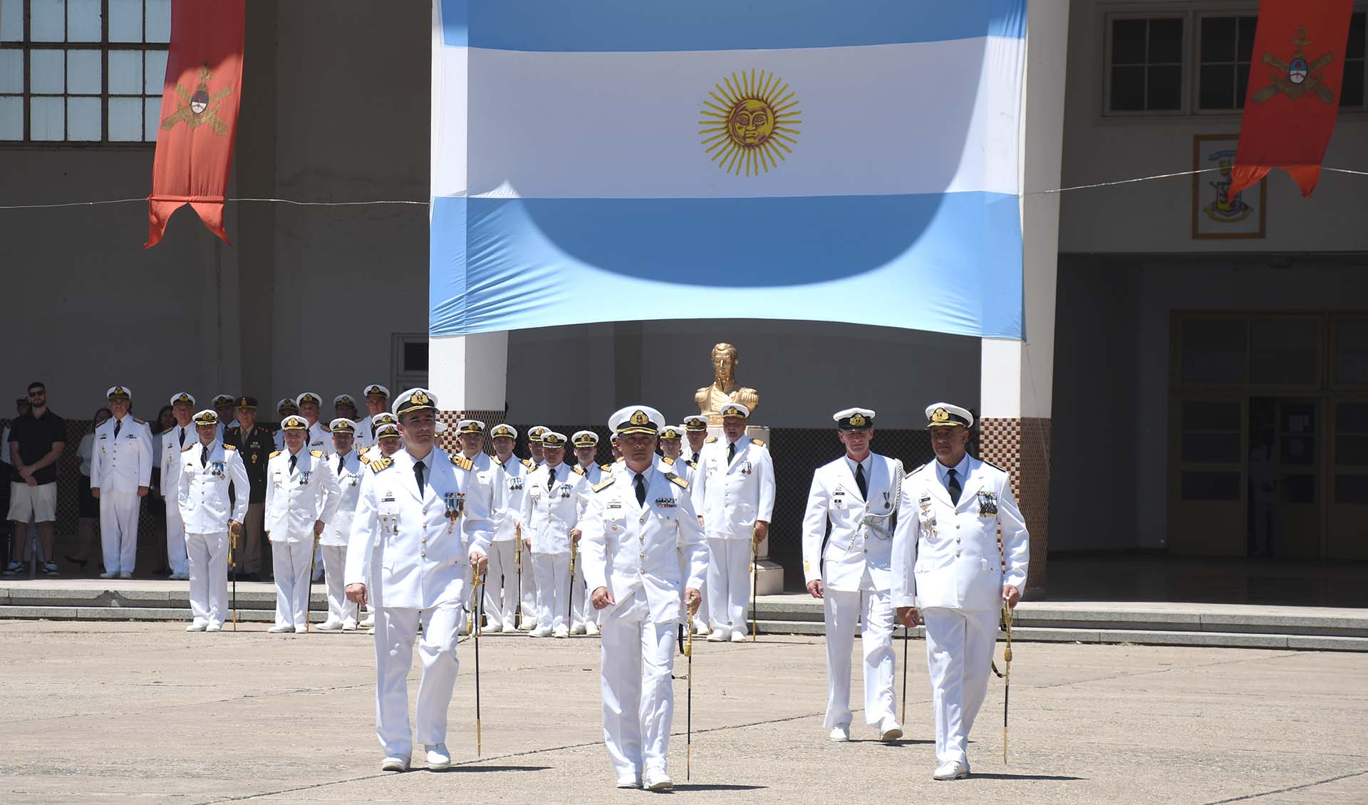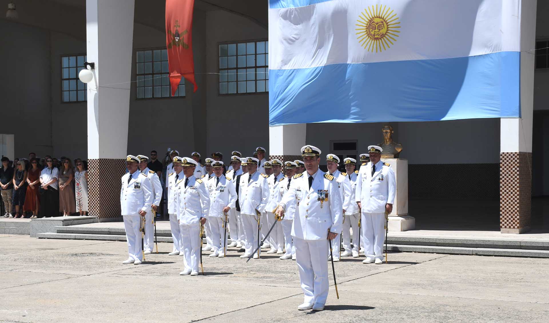 La ceremonia fue presidida por el Comandante de Adiestramiento y Alistamiento de la Armada, Contraalmirante Gustavo Fabián Lioi Pombo, y contó con la presencia del Subjefe del Estado Mayor General de la Armada, Contraalmirante Fernando Daniel Terribile; el Comandante de la Tercera División del Ejército Argentino, General de Brigada Eduardo Maldonado; comandantes, directores y jefes de la Armada; Veteranos de la Guerra de Malvinas; autoridades gubernamentales; invitados especiales y familiares.
