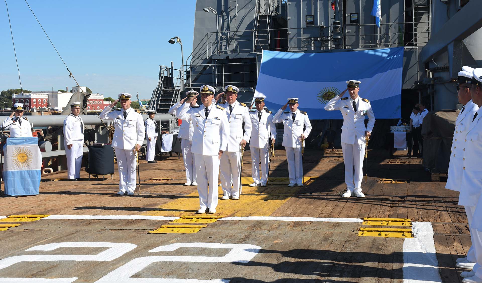 La ceremonia fue presidida por el Comandante de la Flota de Mar, Contraalmirante Pablo Germán Basso, acompañado por el Comandante Naval, Anfibio y Logístico (COAL), Capitán de Navío Fernando Pablo González.