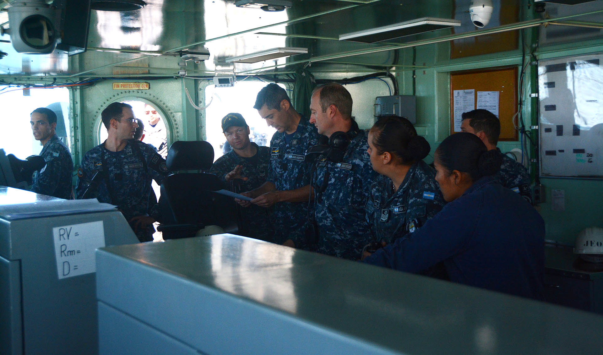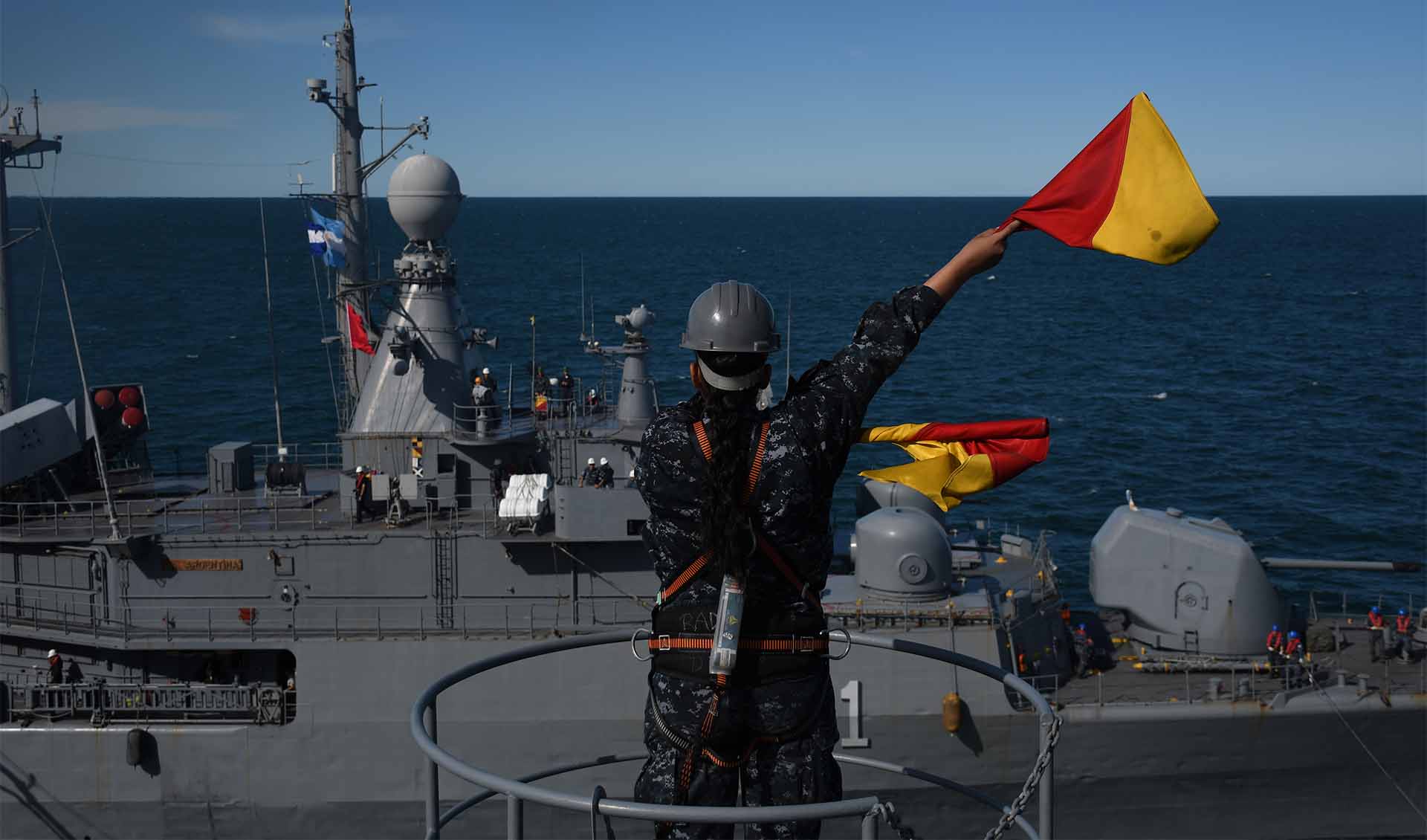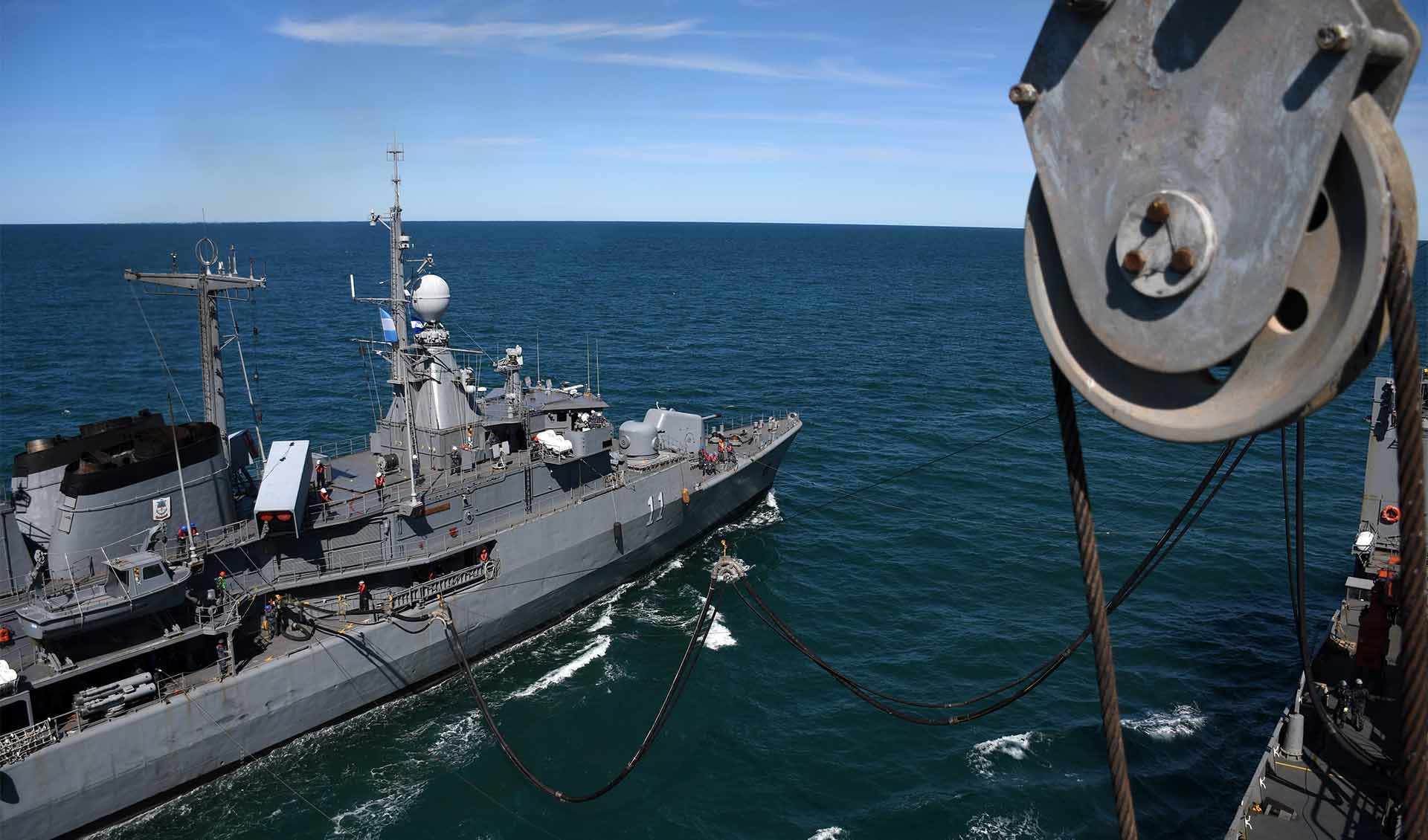 Por la tarde, el destructor ARA “La Argentina” y la corbeta ARA “Robinson” realizaron corridas de tiro efectivo con cañones de 40 mm a blancos simulados, mientras que personal de la Agrupación Buzos Tácticos se desplegó desde el patrullero ARA “Piedrabuena” hacia la corbeta ARA “Rosales” para desarrollar ejercicios de Visita, Registro y Captura (VRC), metodología empleada durante los patrullados de control y vigilancia de tráfico marítimo que la Armada desarrolla en aguas jurisdiccionales argentinas.