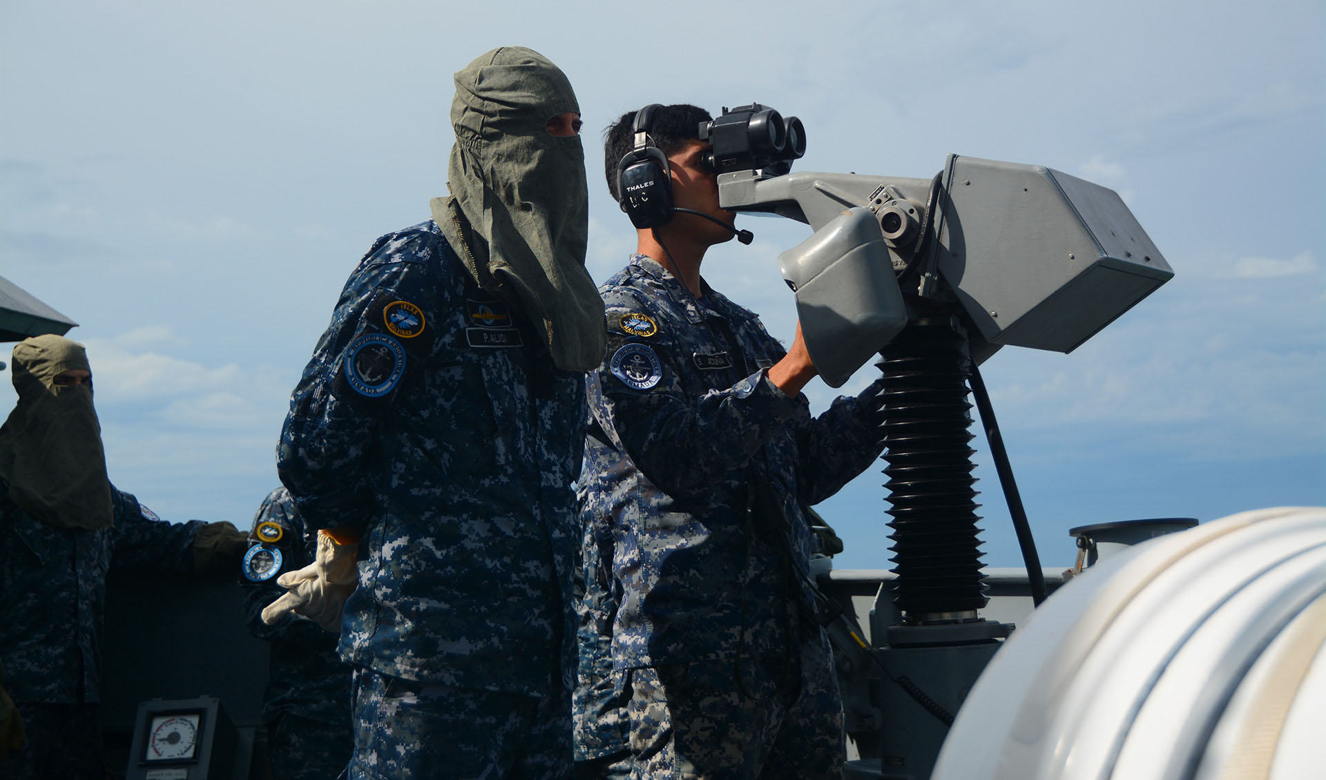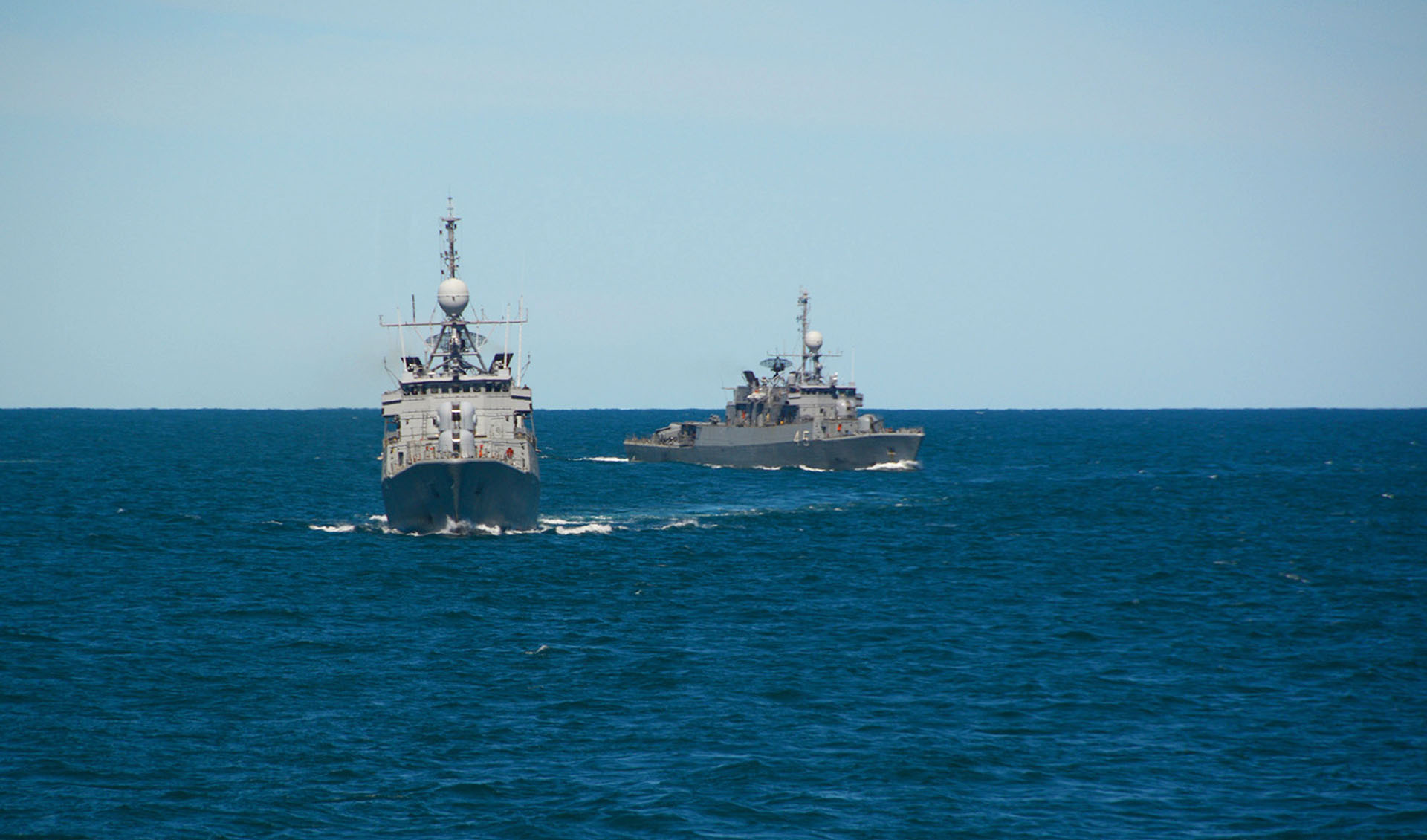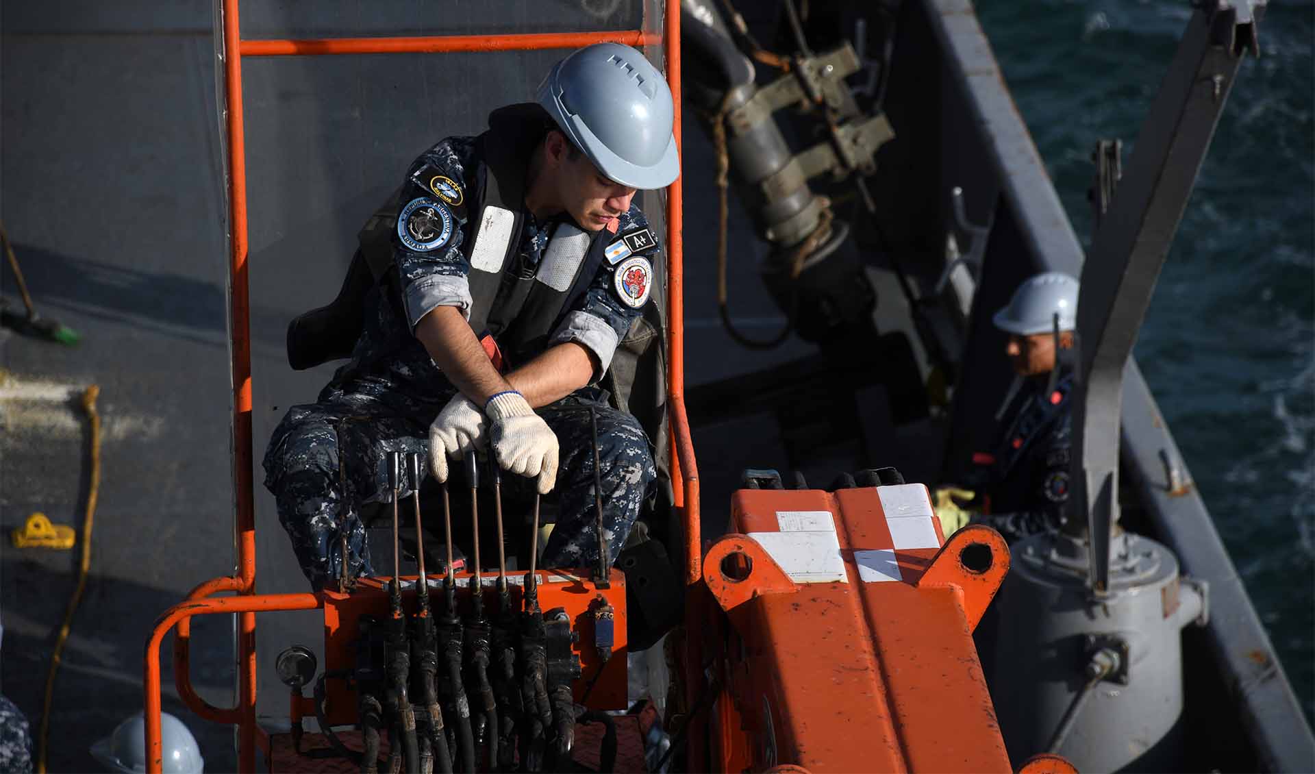 Por la tarde, el destructor ARA “La Argentina” y la corbeta ARA “Robinson” realizaron corridas de tiro efectivo con cañones de 40 mm a blancos simulados, mientras que personal de la Agrupación Buzos Tácticos se desplegó desde el patrullero ARA “Piedrabuena” hacia la corbeta ARA “Rosales” para desarrollar ejercicios de Visita, Registro y Captura (VRC), metodología empleada durante los patrullados de control y vigilancia de tráfico marítimo que la Armada desarrolla en aguas jurisdiccionales argentinas.