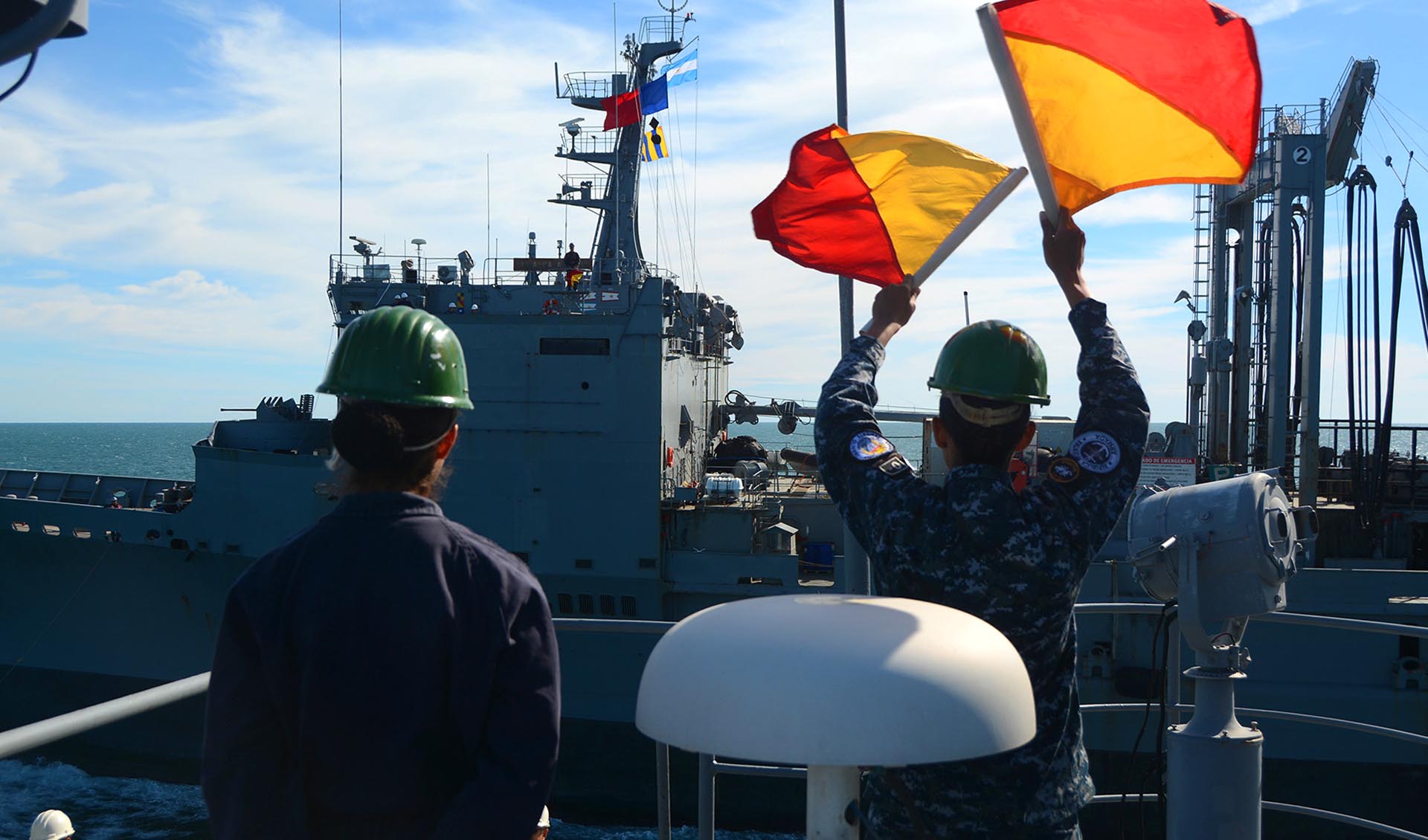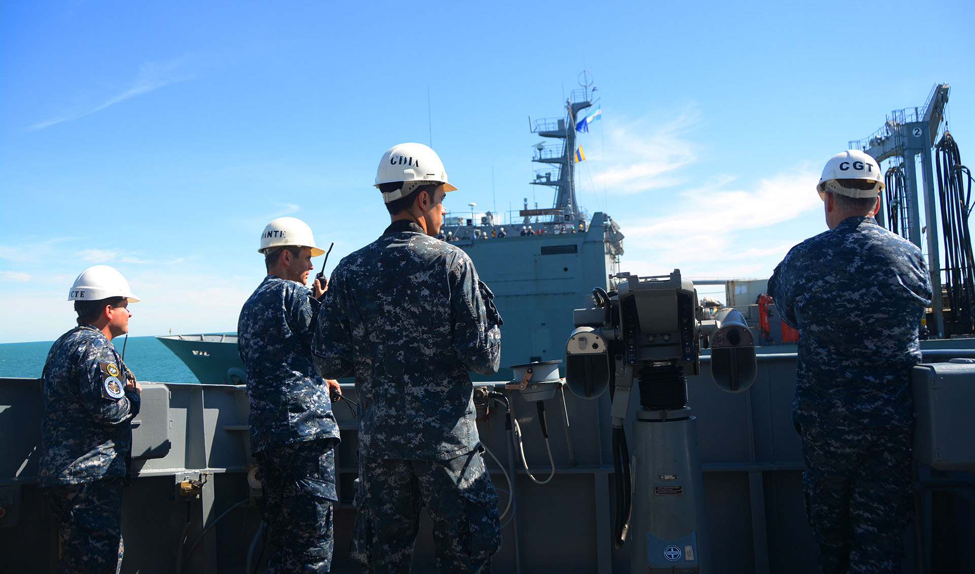La operación estuvo a cargo del Comandante de la División de Destructores, Capitán de Navío Claudio Otero, y supervisada por el Comandante de la Flota de Mar, Contraalmirante Pablo Basso, ambos embarcados en el destructor ARA “La Argentina”. También participó el Comandante Naval, Anfibio y Logístico, Capitán de Navío Fernando González, a bordo del ARA “Patagonia”.