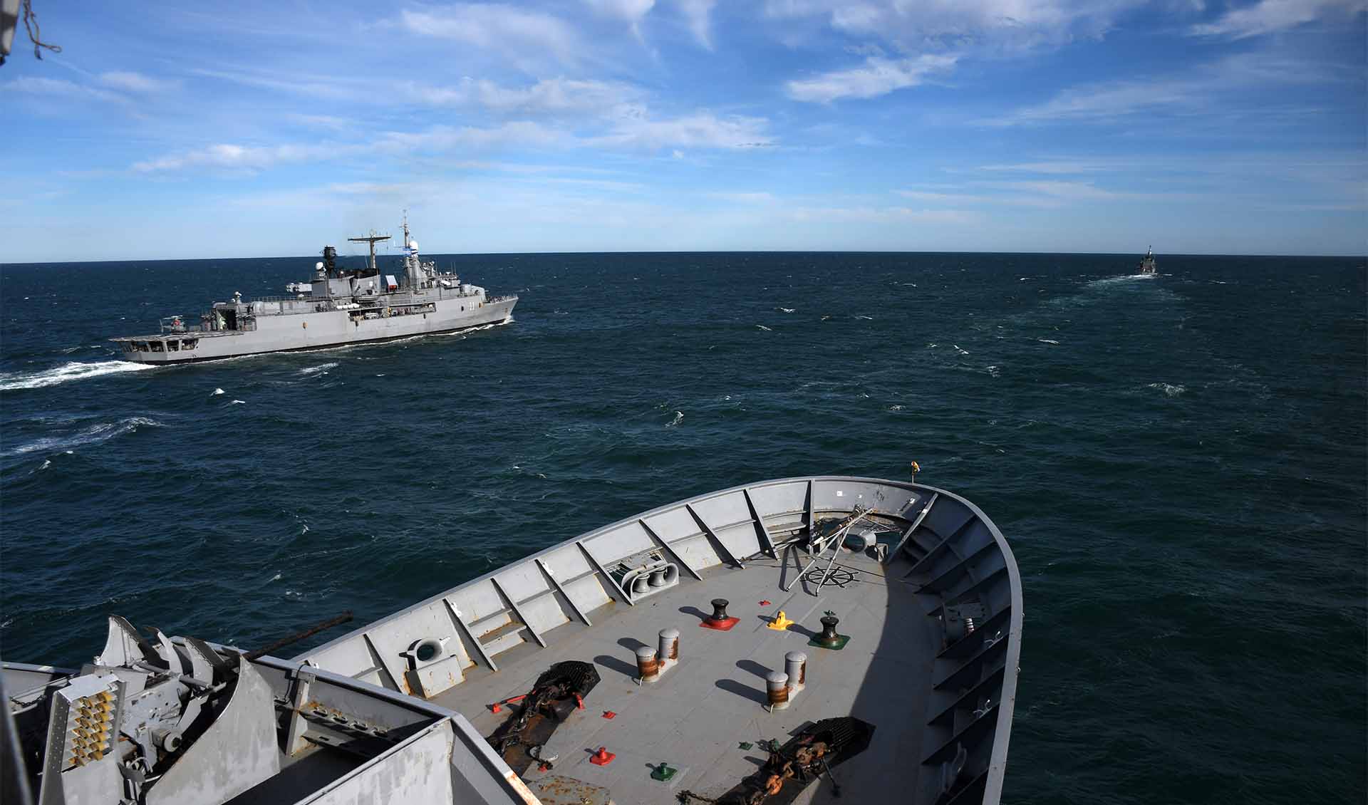 Desde Puerto Belgrano zarparon el destructor ARA "La Argentina" y las corbetas ARA "Rosales" y ARA "Robinson", quienes se encontraron en el mar con el buque logístico ARA "Patagonia" que regresaba de concretar el puente logístico de la Campaña Antártica de Verano junto al rompehielos ARA “Almirante Irízar” y el aviso ARA “Puerto Argentino".