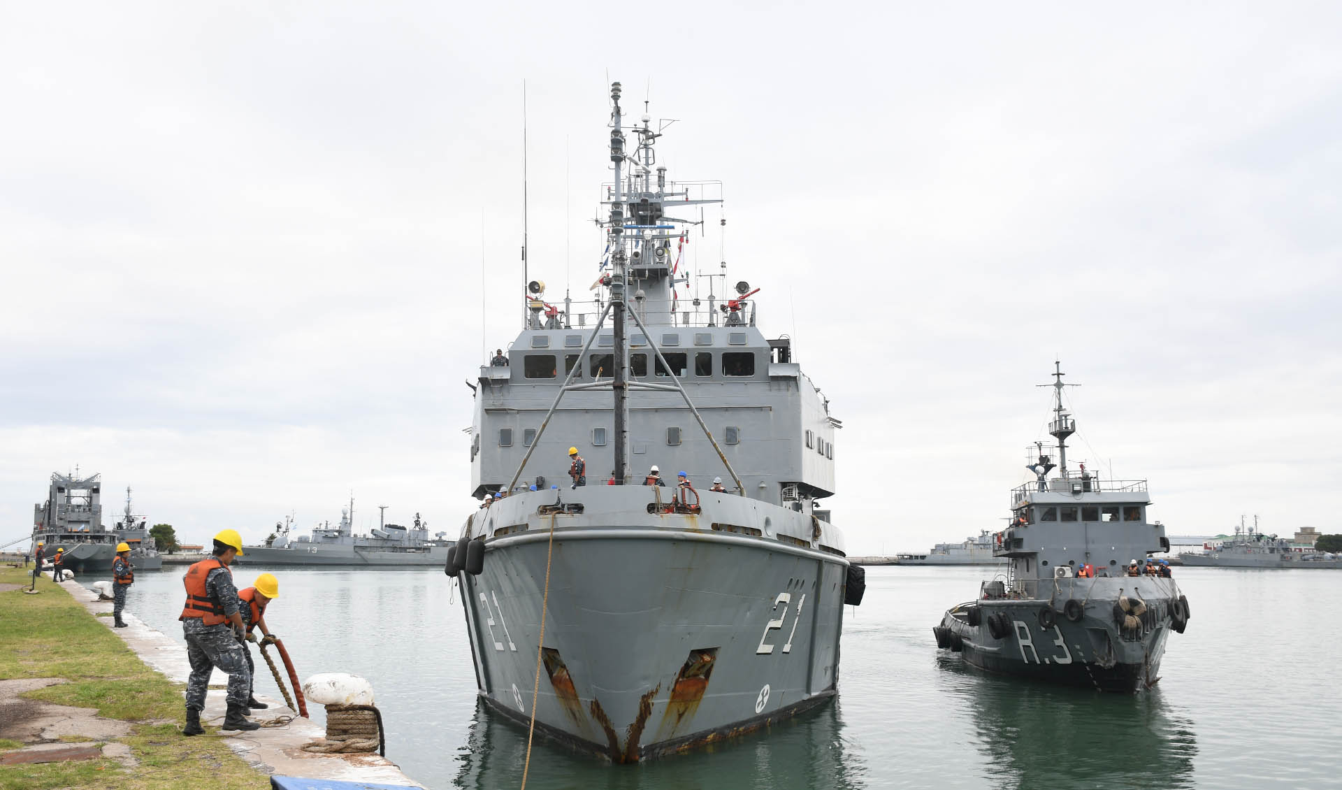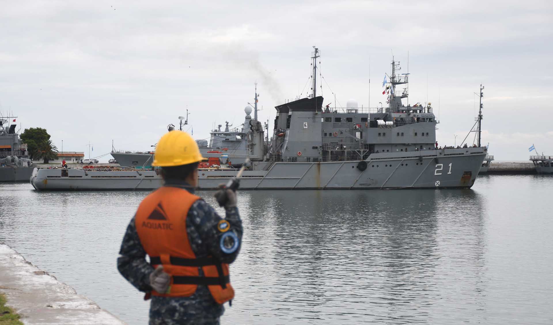 En el muelle, la unidad fue recibida por el Comandante de la Flota de Mar, Contraalmirante Pablo Germán Basso, acompañado por su Plana Mayor.